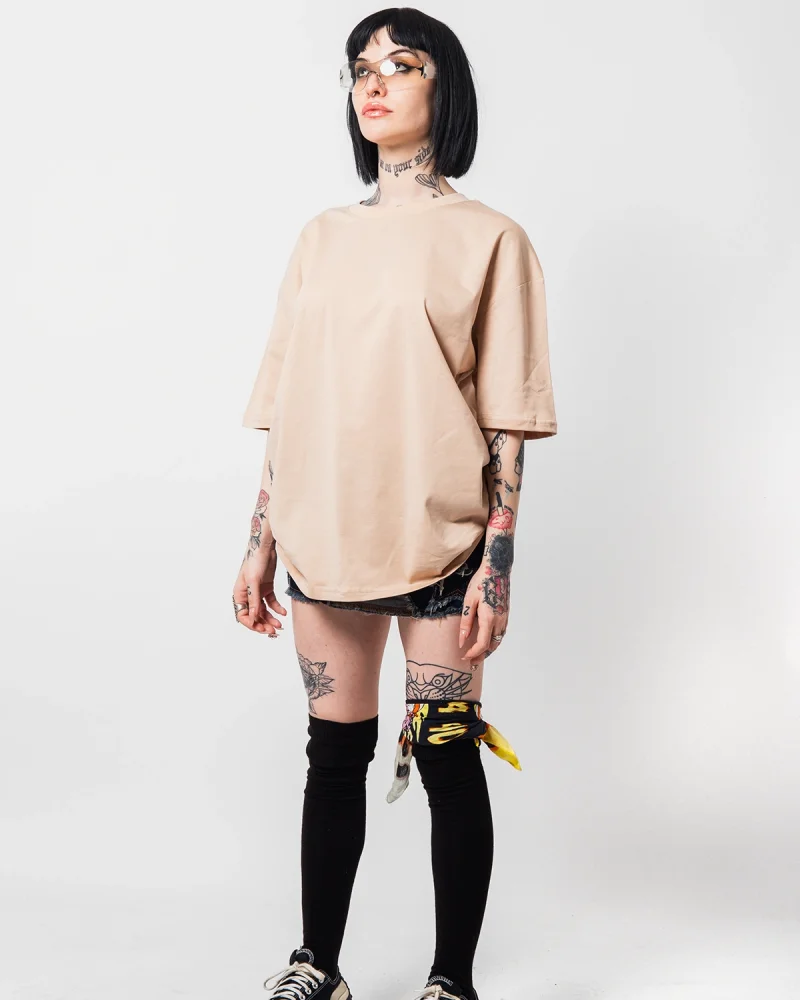 816 Design Bej Basic Premium Oversize Tshirt