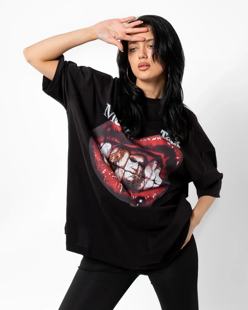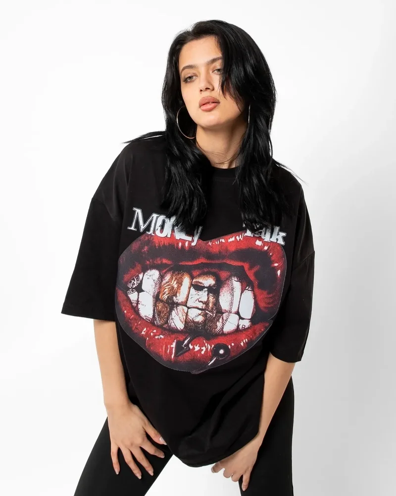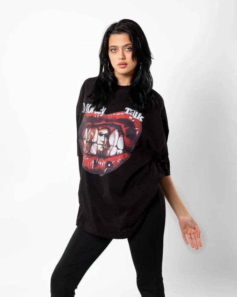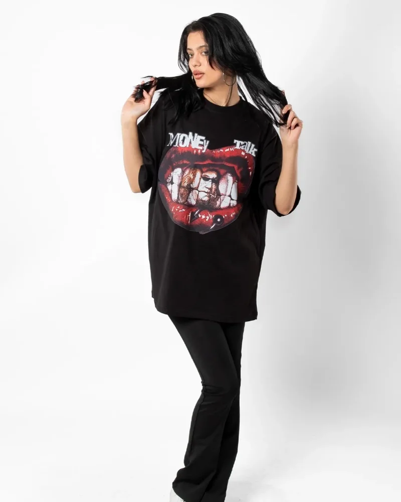 Money Talk Baskılı Siyah Oversize Unisex Tshirt