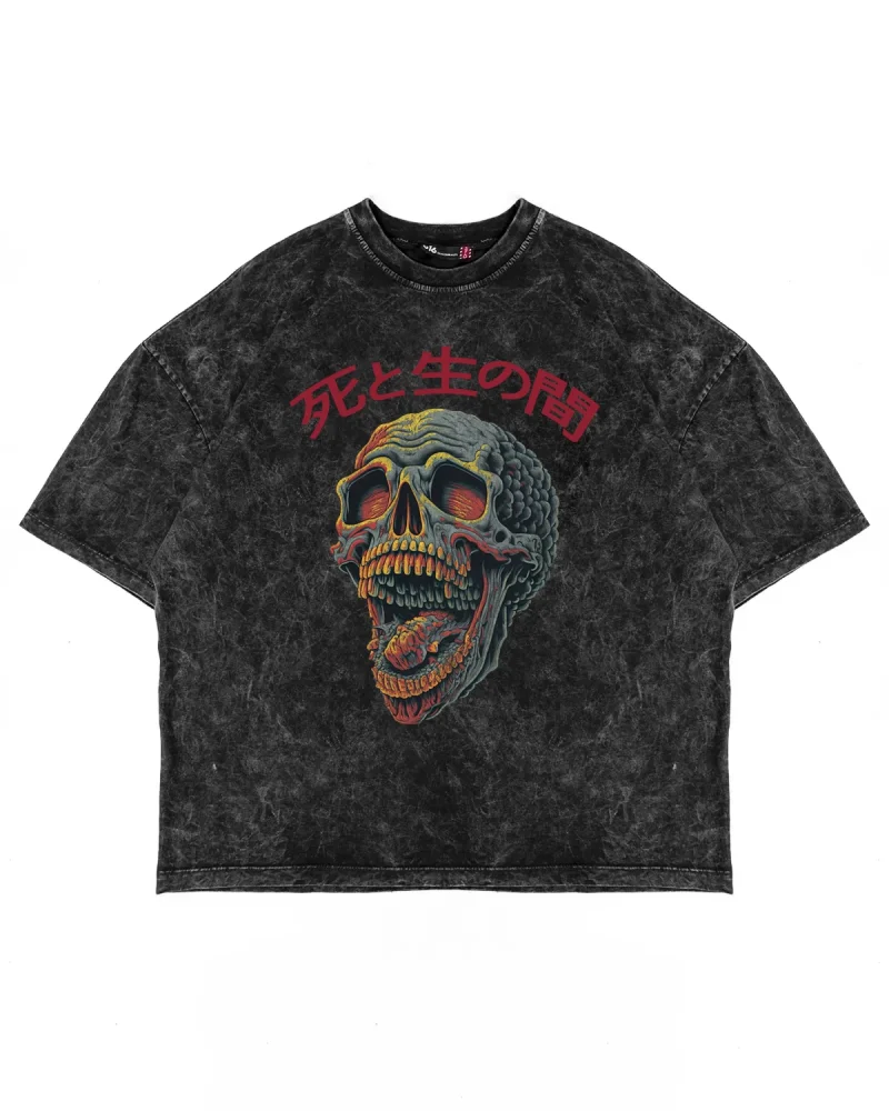 Skull Scream Baskılı Oversize Unisex Yıkamalı Siyah Tshirt