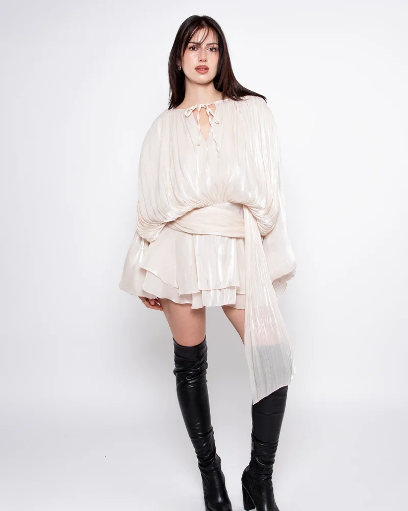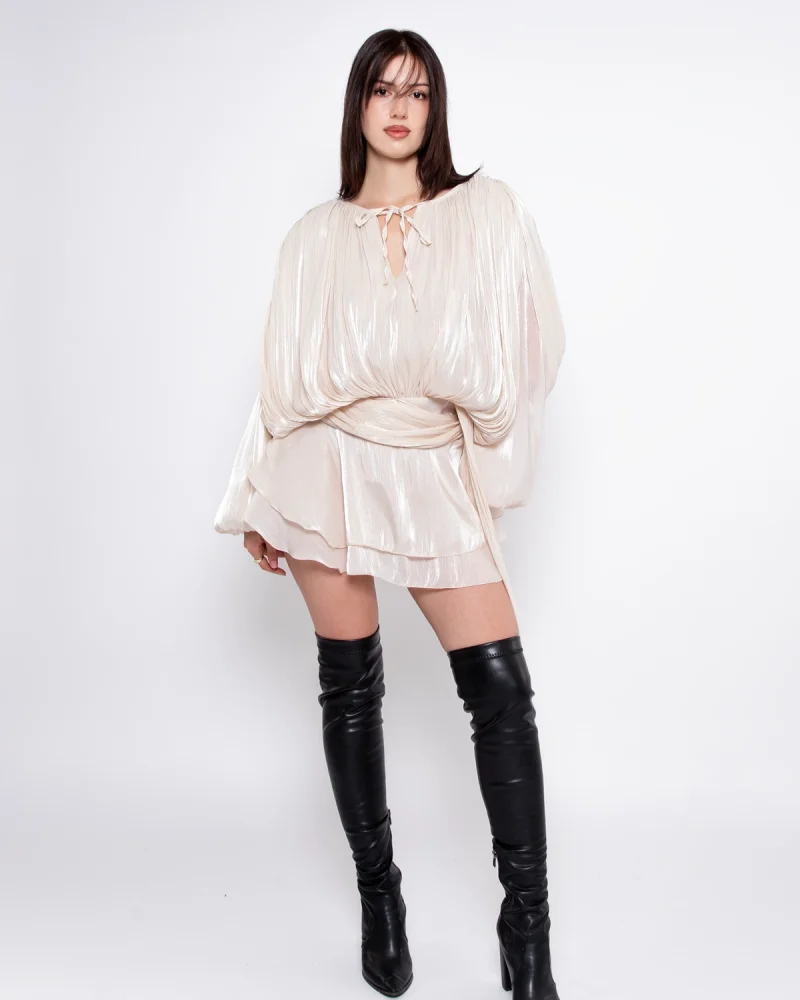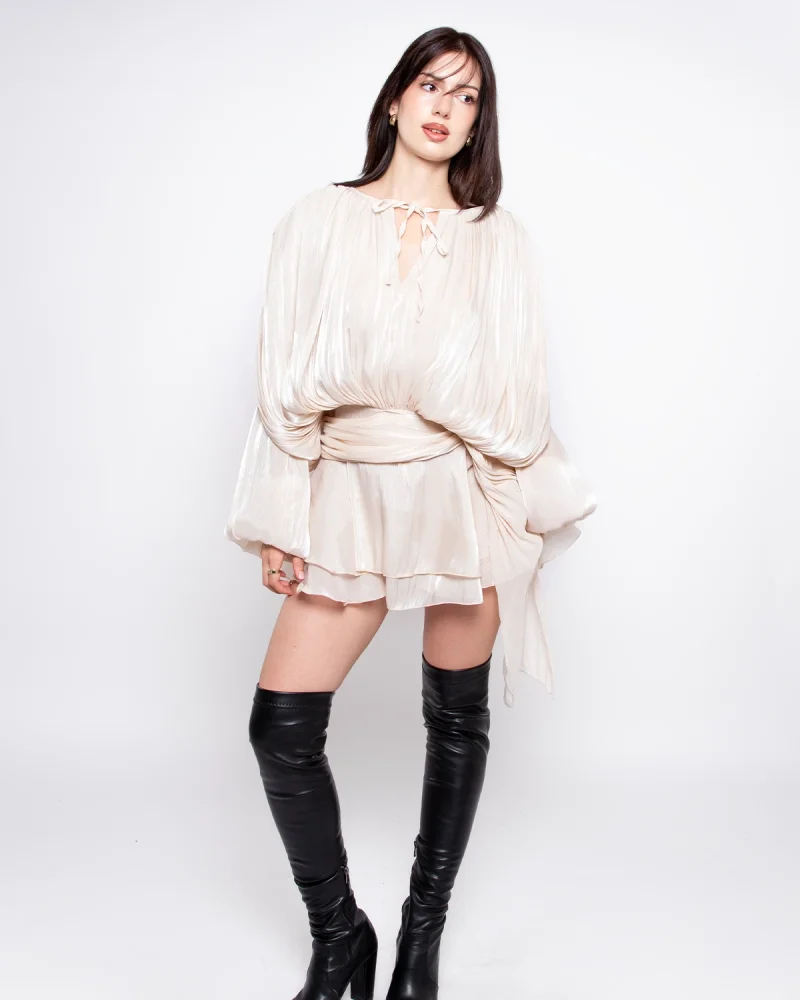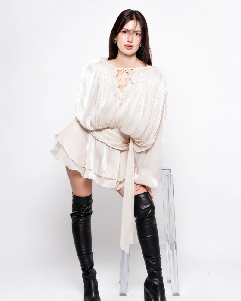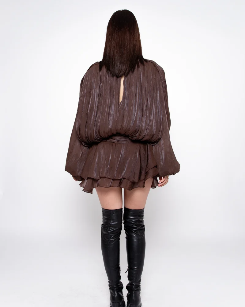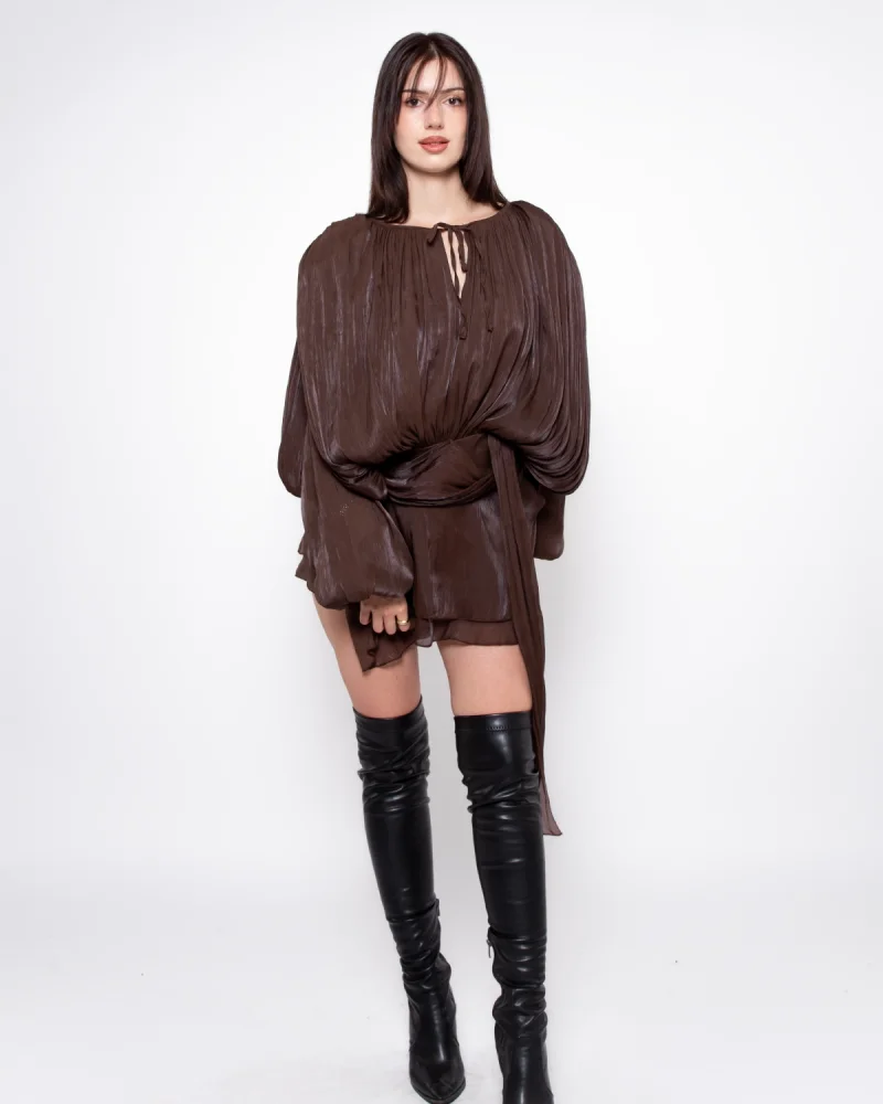 Dantel Detaylı Saten Korseli Mini Askılı Kahverengi Şort Etek Elbise