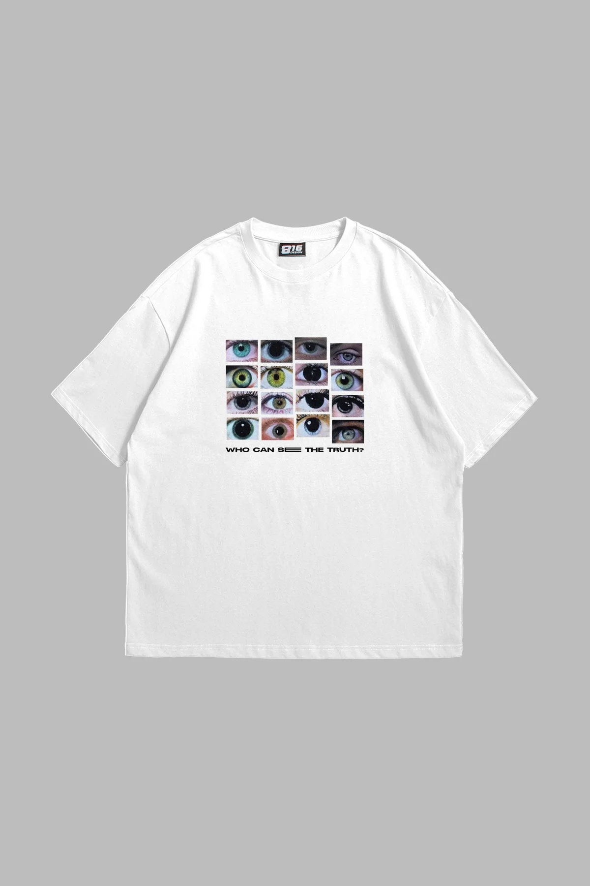 WHO CAN SEE BASKILI OVERSİZE UNİSEX BEYAZ TSHİRT