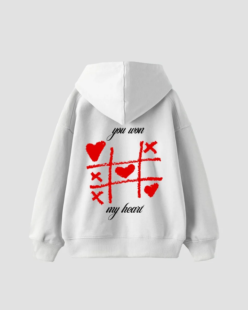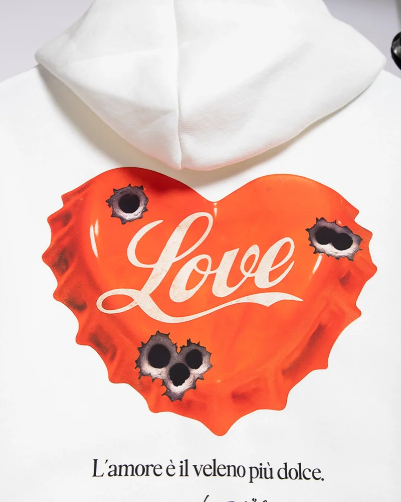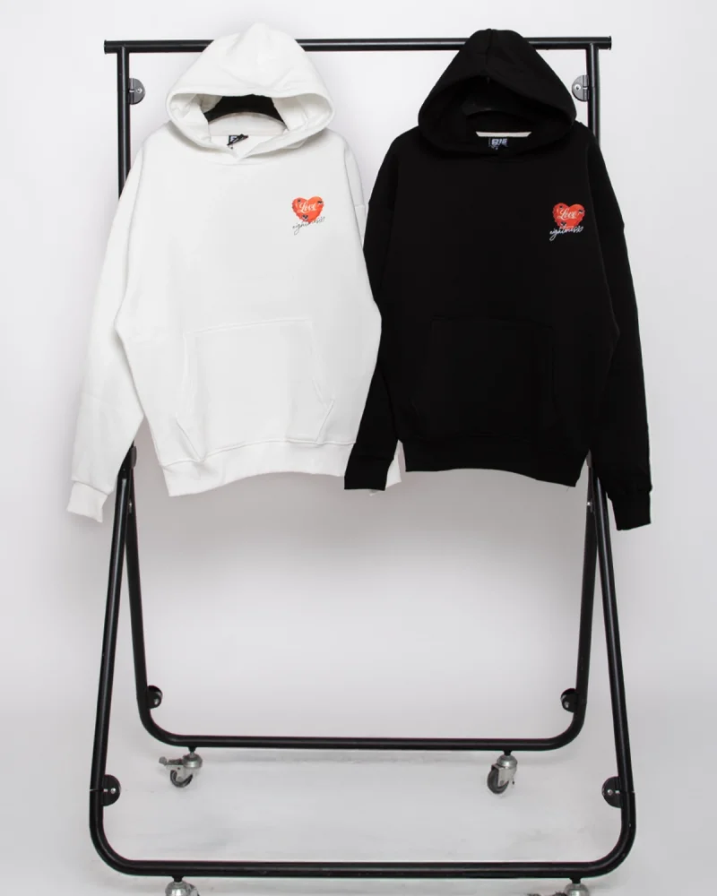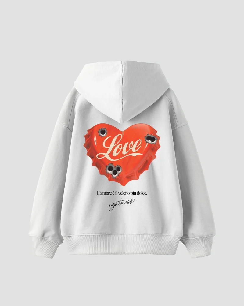 816 Love Baskılı Oversize Unisex Beyaz Hoodie