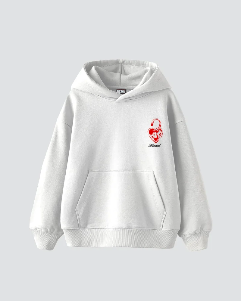 816 Locked Baskılı Oversize Unisex Beyaz Hoodie