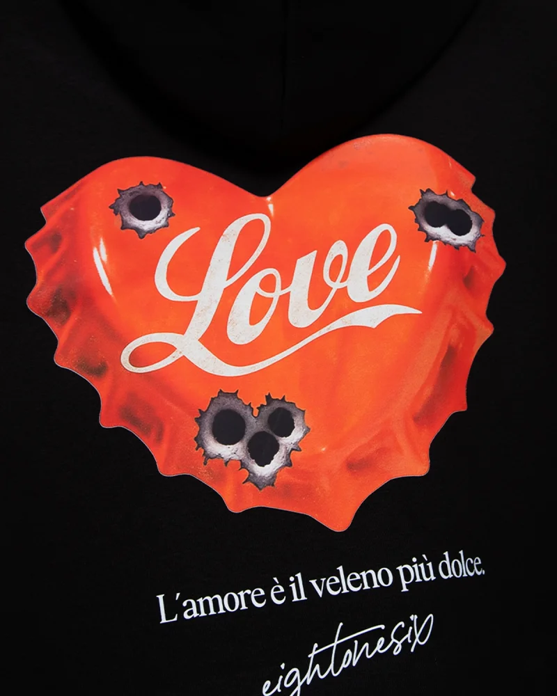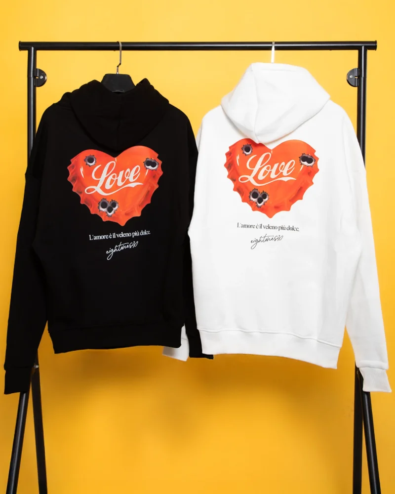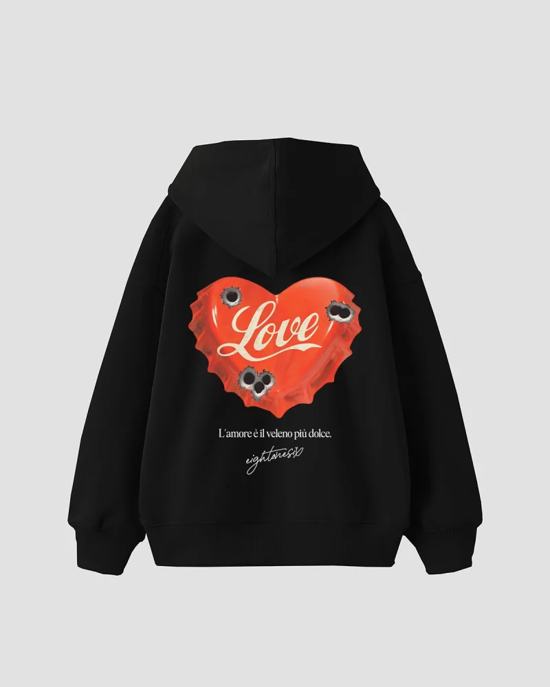 816 Love Baskılı Oversize Unisex Siyah Hoodie