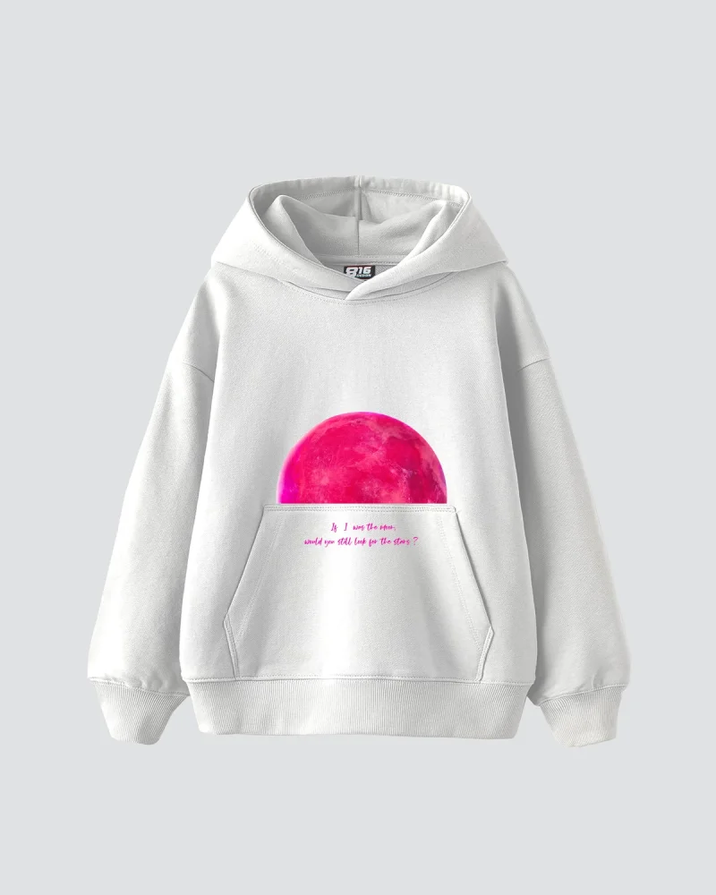 Moon İs Alone Baskılı Oversize Unisex Beyaz Hoodie