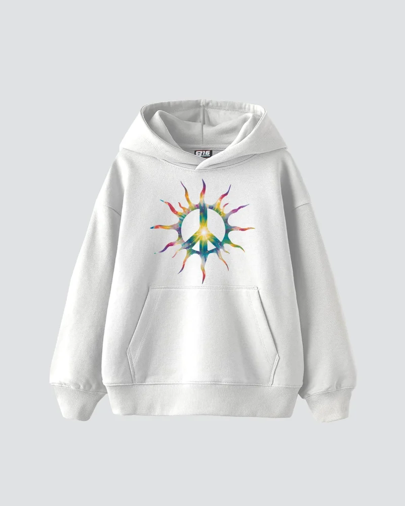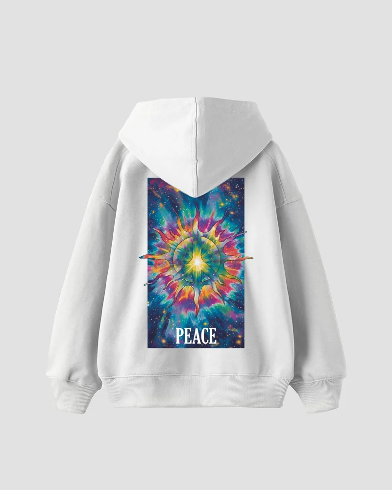 Peace Baskılı Oversize Unisex Beyaz Hoodie