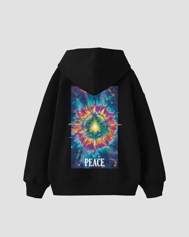 Peace Baskılı Oversize Unisex Siyah Hoodie