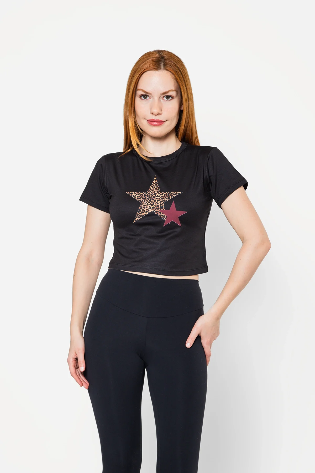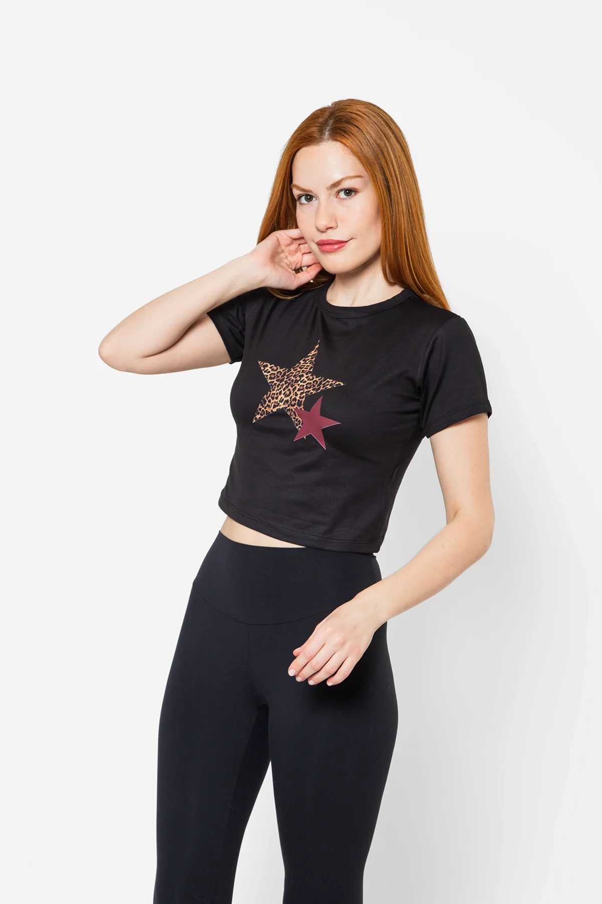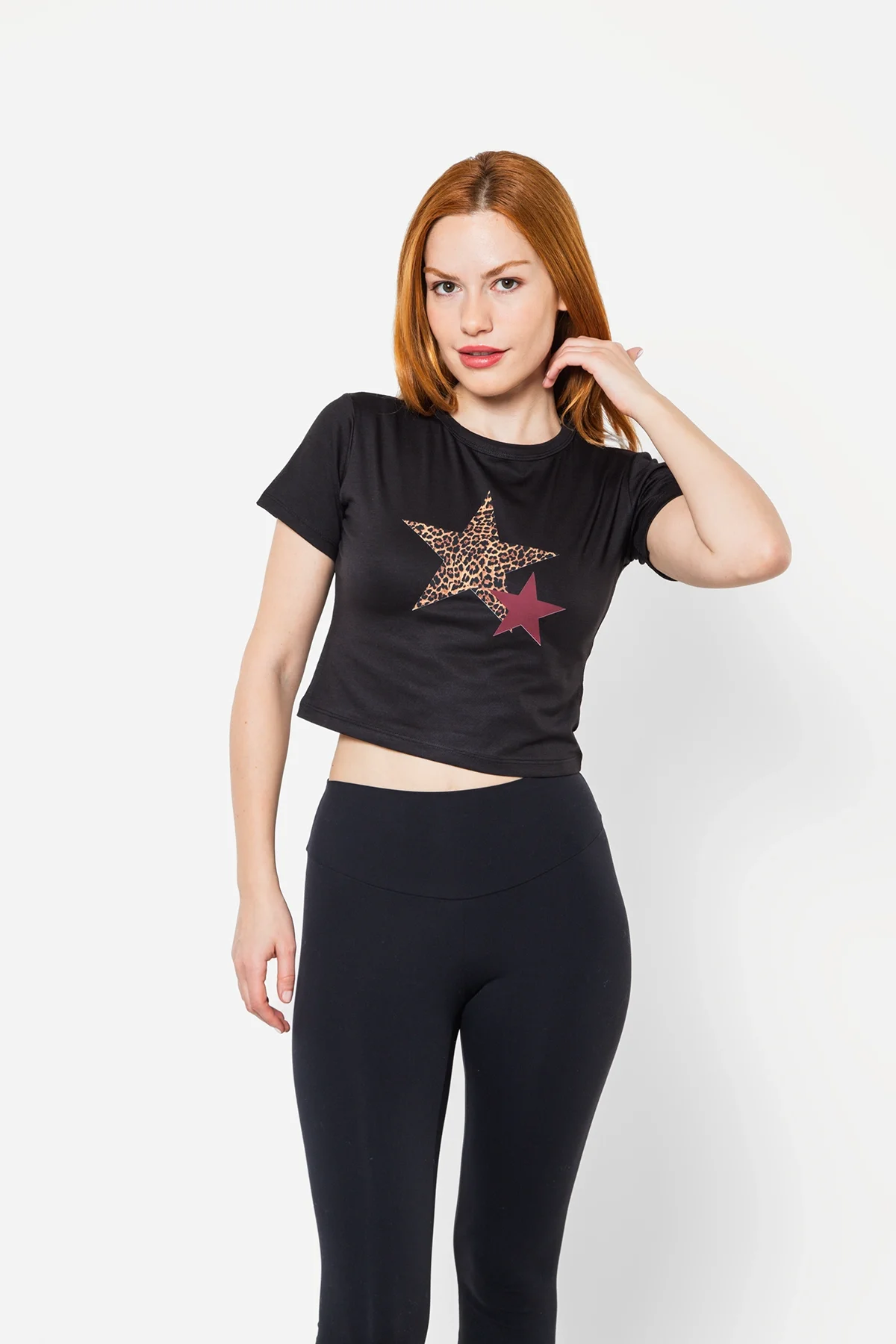 Y2K STAR BASKILI SİYAH CROP TOP