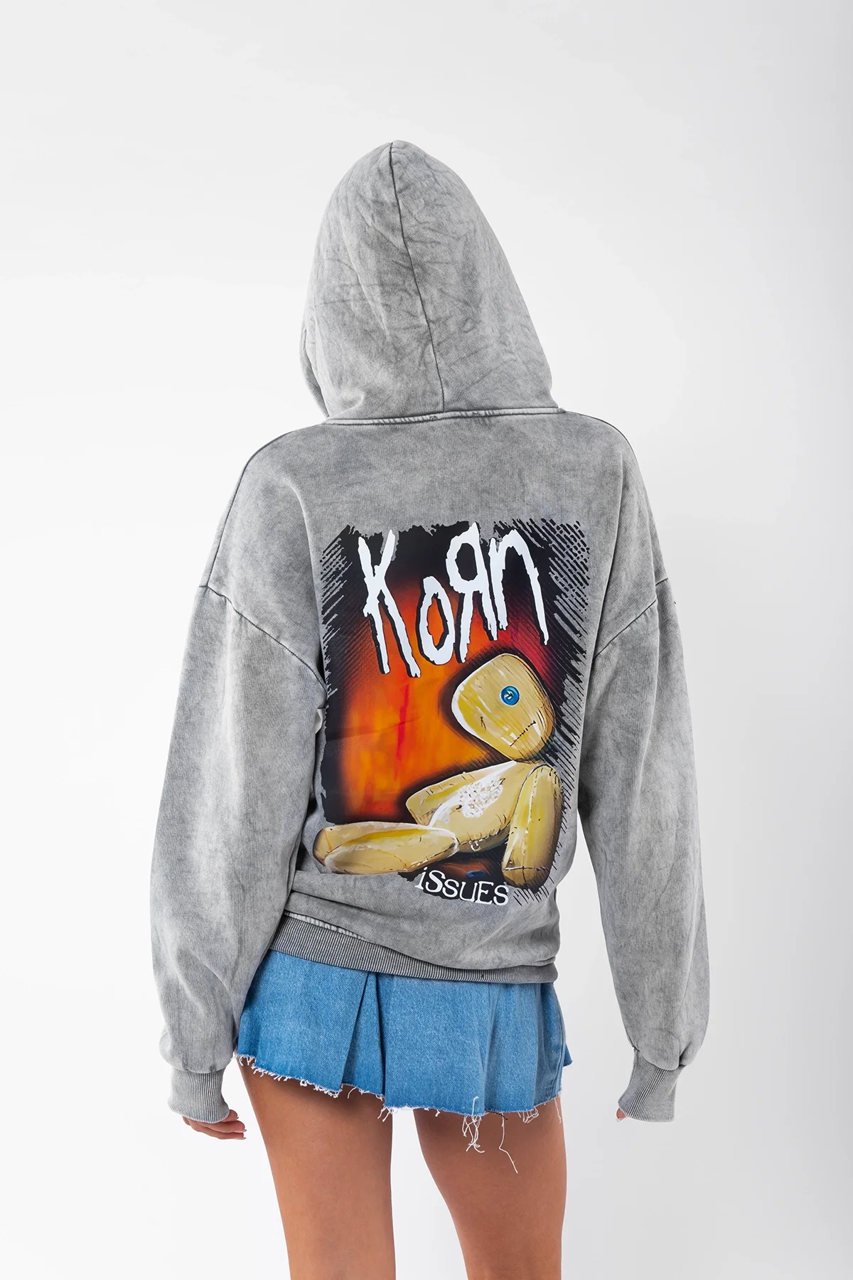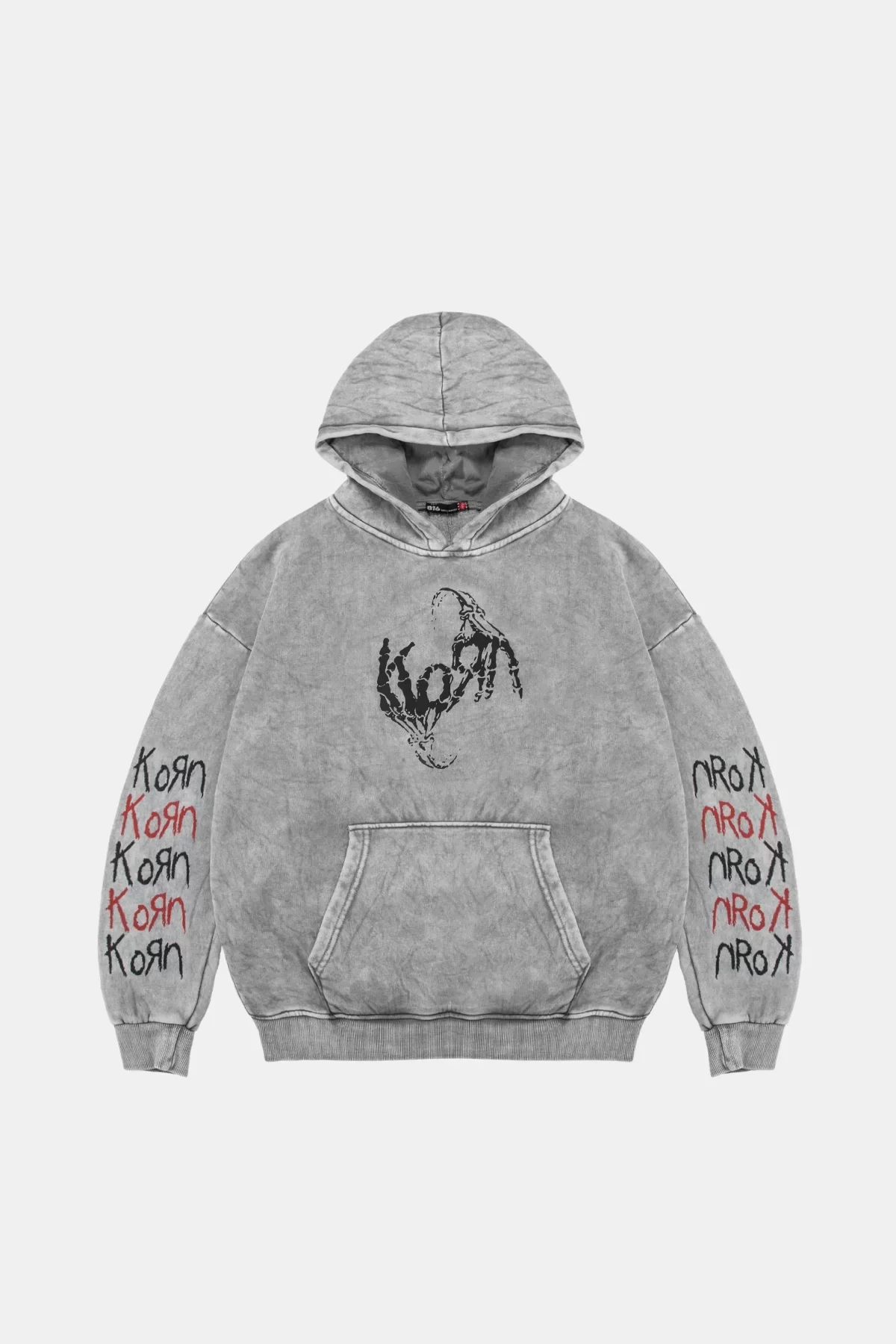 YIKAMALI BEYAZ KORN BASKILI OVERSİZE UNİSEX HOODİE
