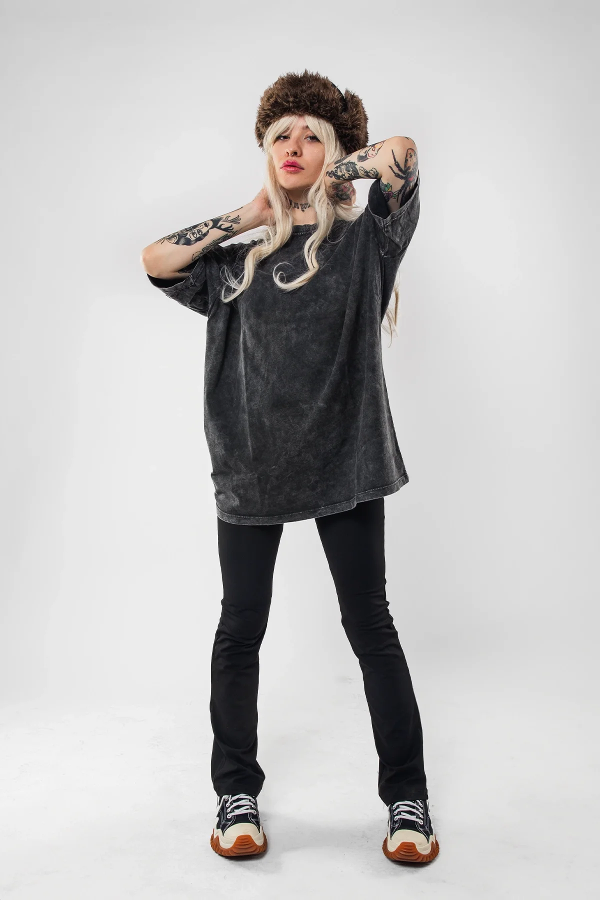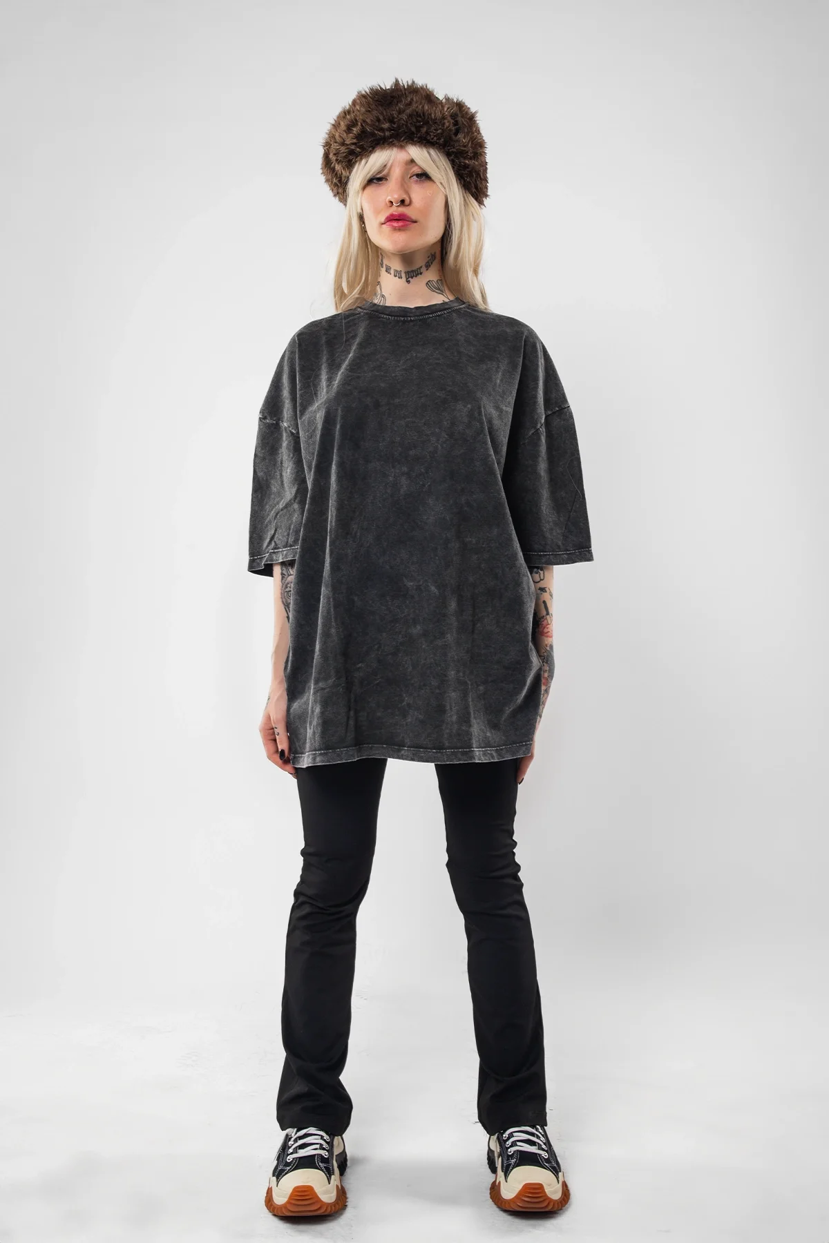 YIKAMALI SİYAH BASİC OVERSİZE UNİSEX TSHİRT