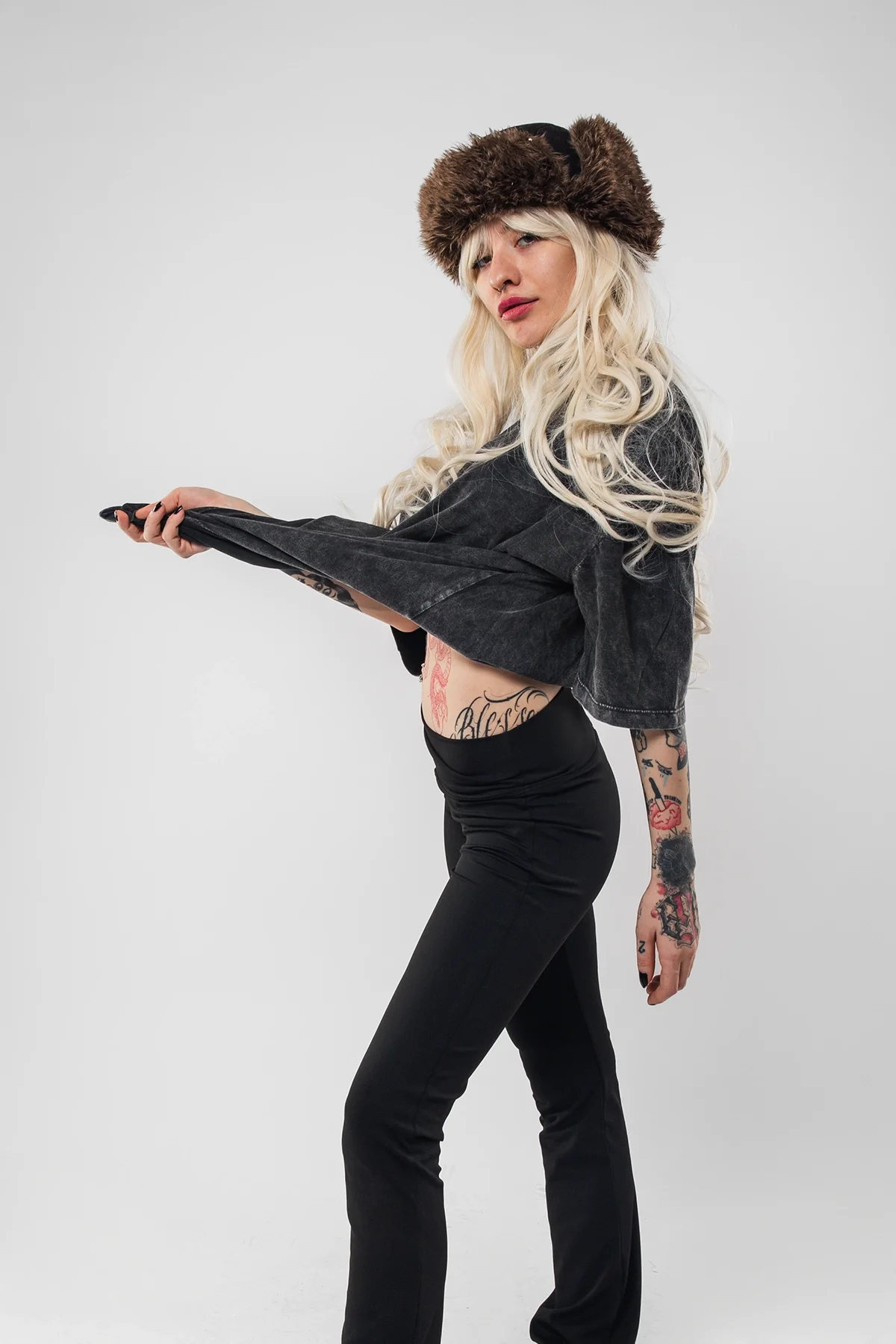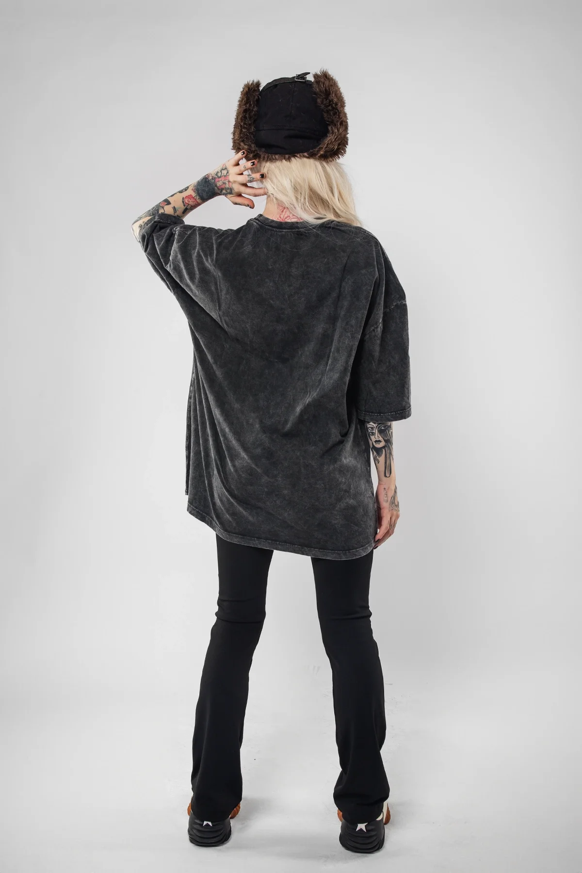 Polished Rose Baskılı Oversize Unisex Yıkamalı Siyah Tshirt