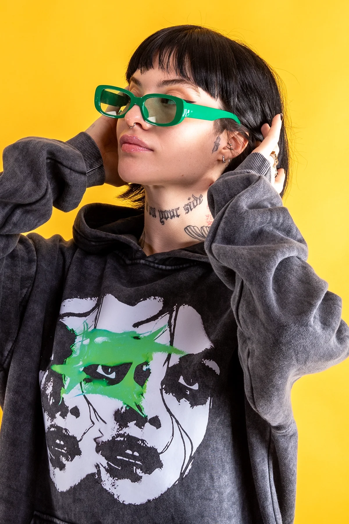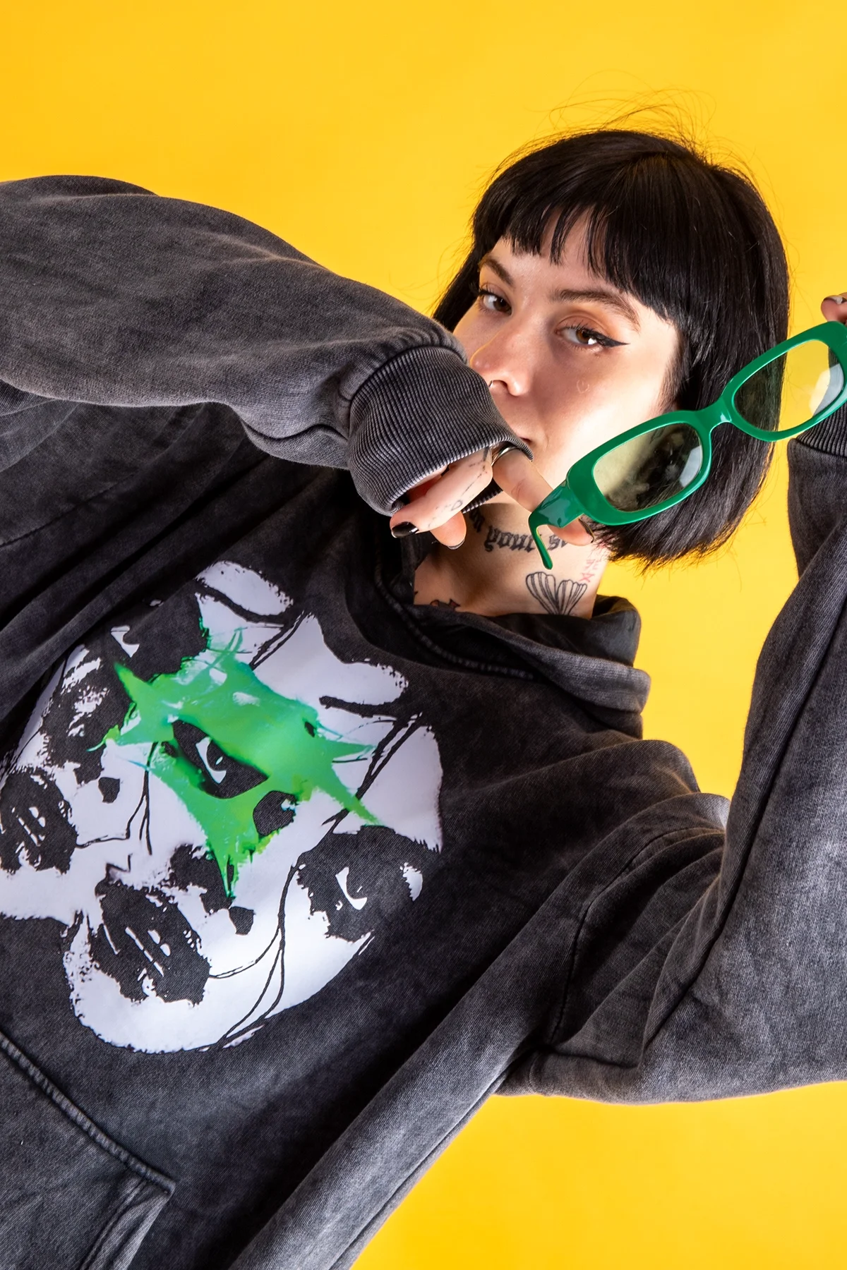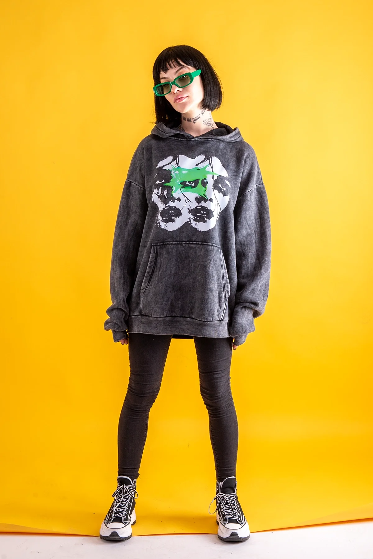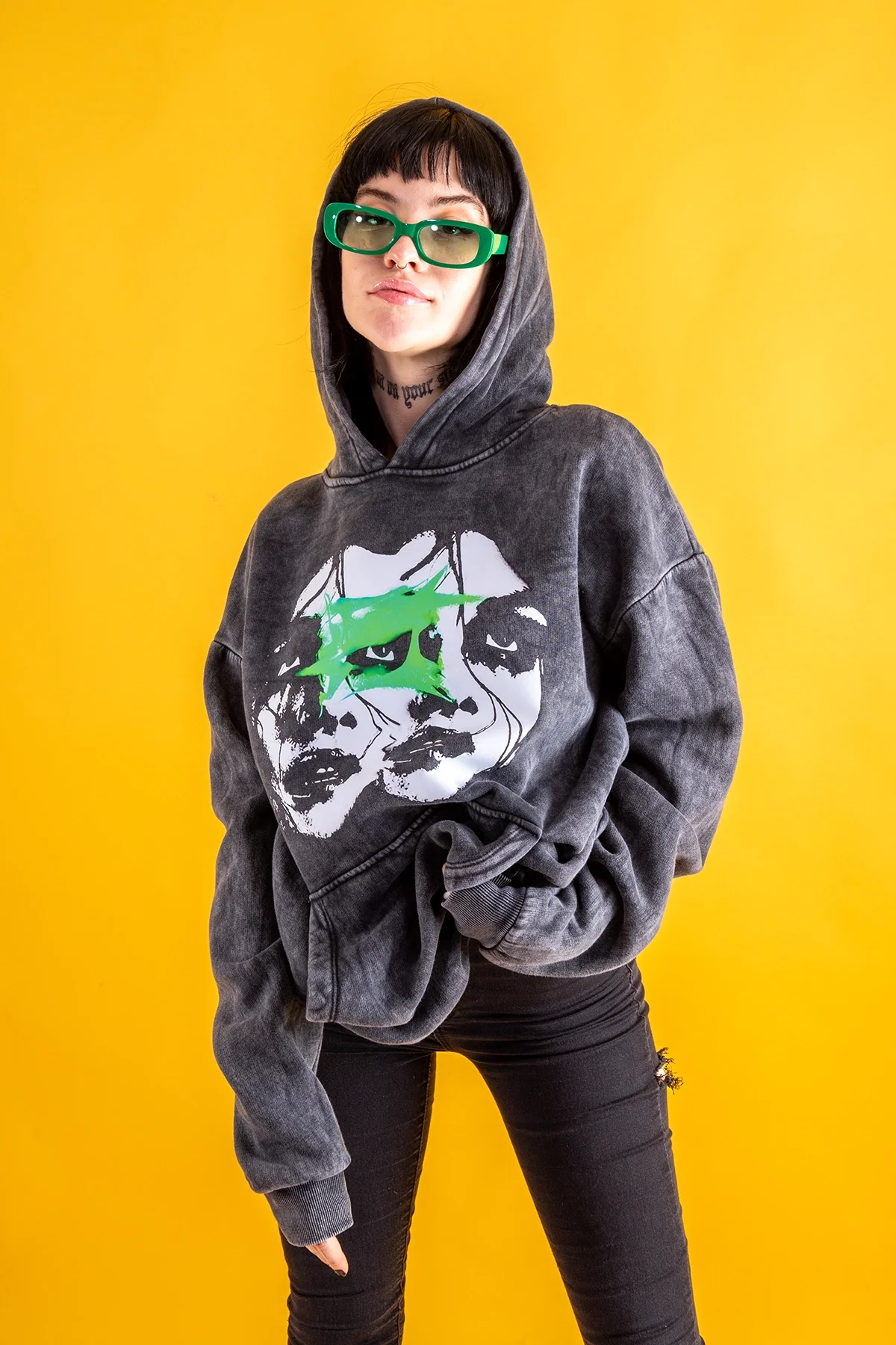 YIKAMALI WOMAN SHADOWS BASKILI FÜME OVERSİZE UNİSEX HOODİE