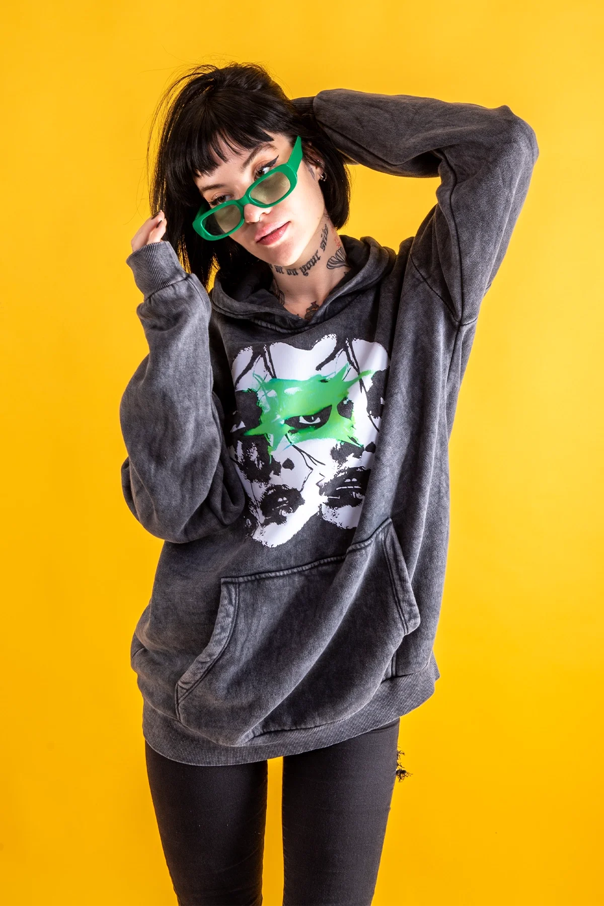 Sırt Baskılı Leopar Yıldız Baskılı Oversize Unisex Yıkamalı Siyah Hoodie
