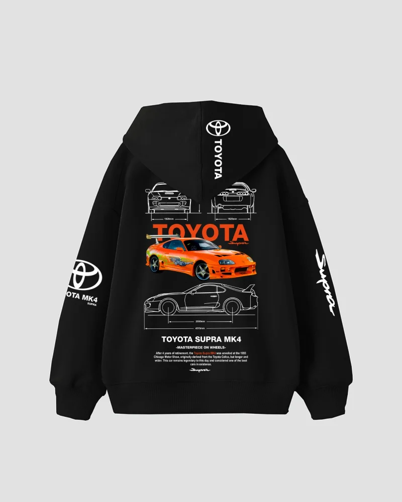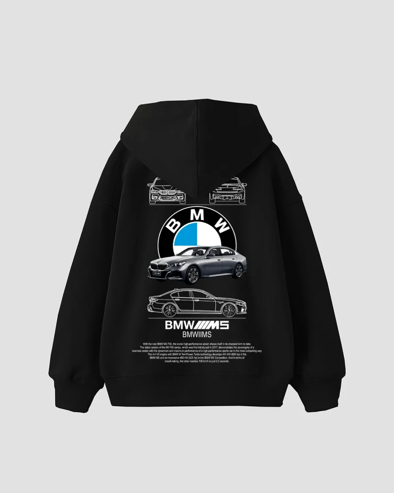 The M5 Blueprint Baskılı Oversize Unisex Siyah Hoodie