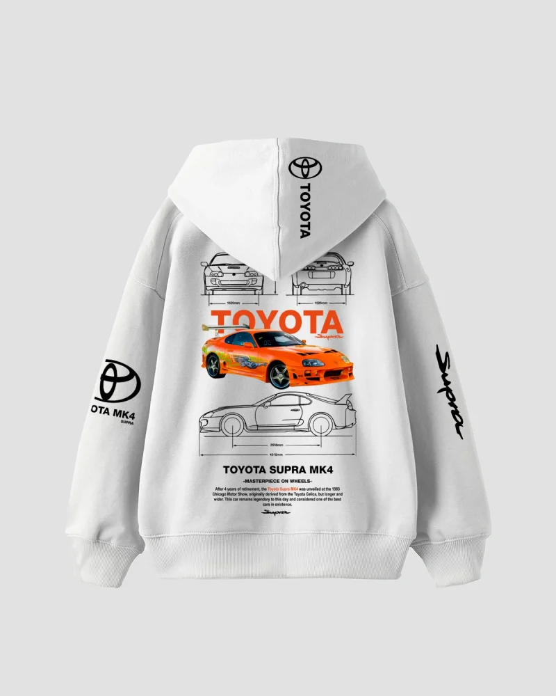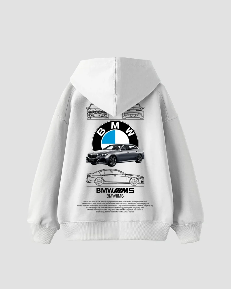 The M5 Blueprint Baskılı Oversize Unisex Beyaz Hoodie