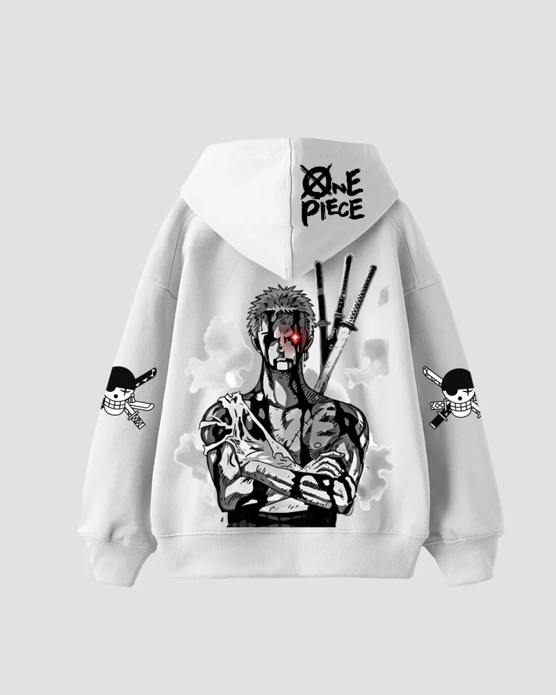 Roronoa Zoro Baskılı Oversize Unisex Beyaz Hoodie