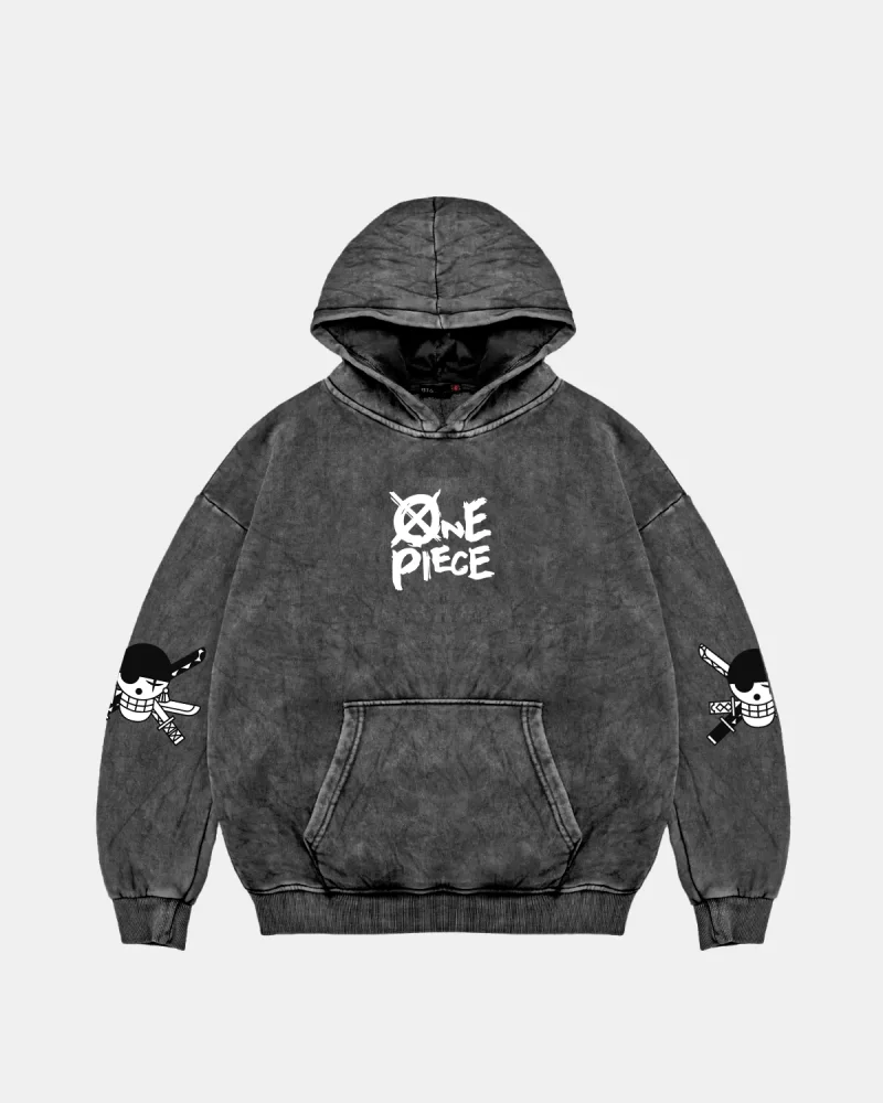 Roronoa Zoro Baskılı Oversize Unisex Yıkamalı Siyah Hoodie