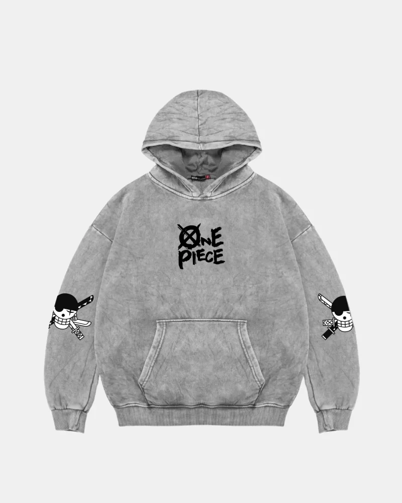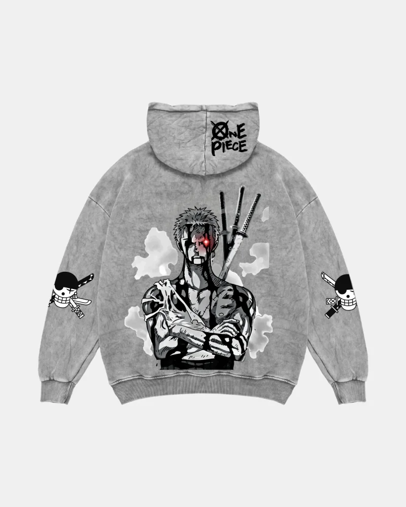Roronoa Zoro Baskılı Oversize Unisex Yıkamalı Beyaz Hoodie
