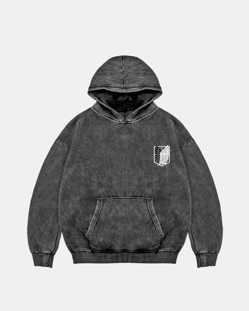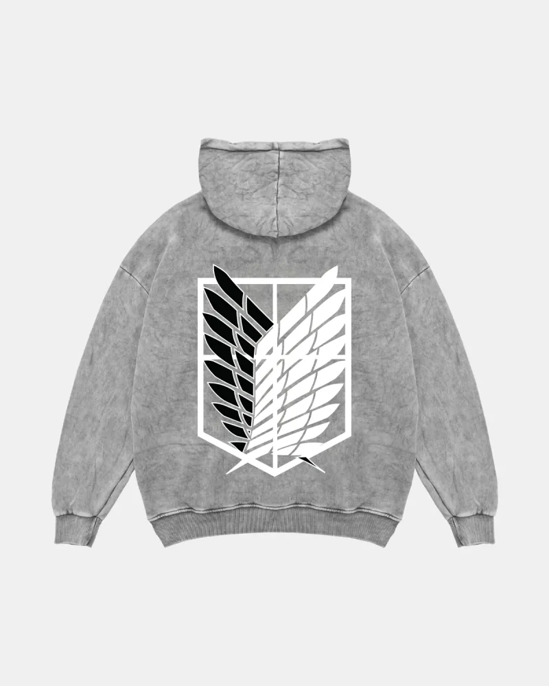 Wings of Freedom Baskılı Oversize Unisex Yıkamalı Siyah Hoodie