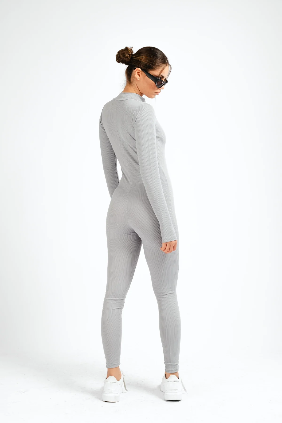 Fermuar Detaylı Kısa Kol Mini Gri Tulum