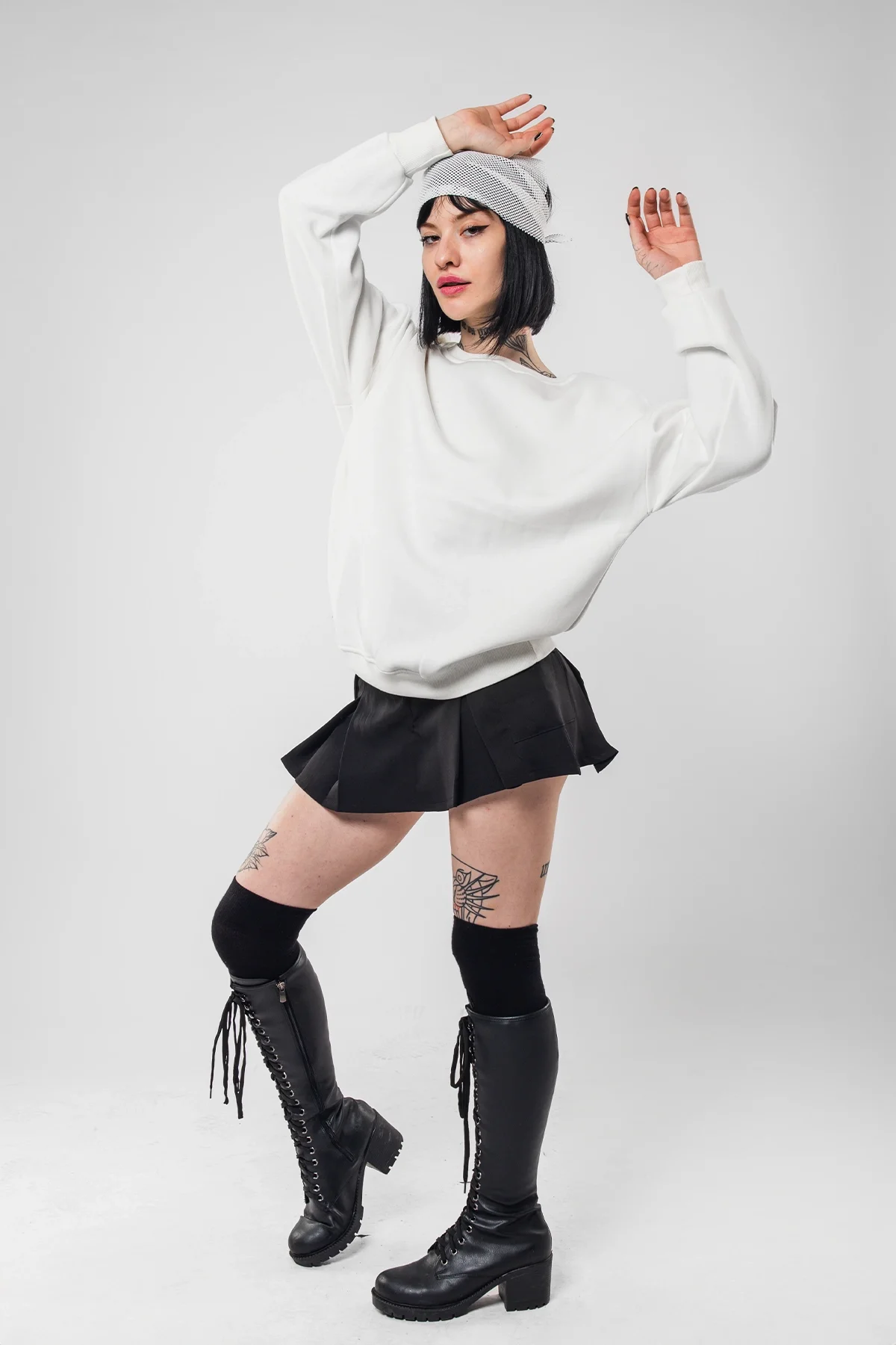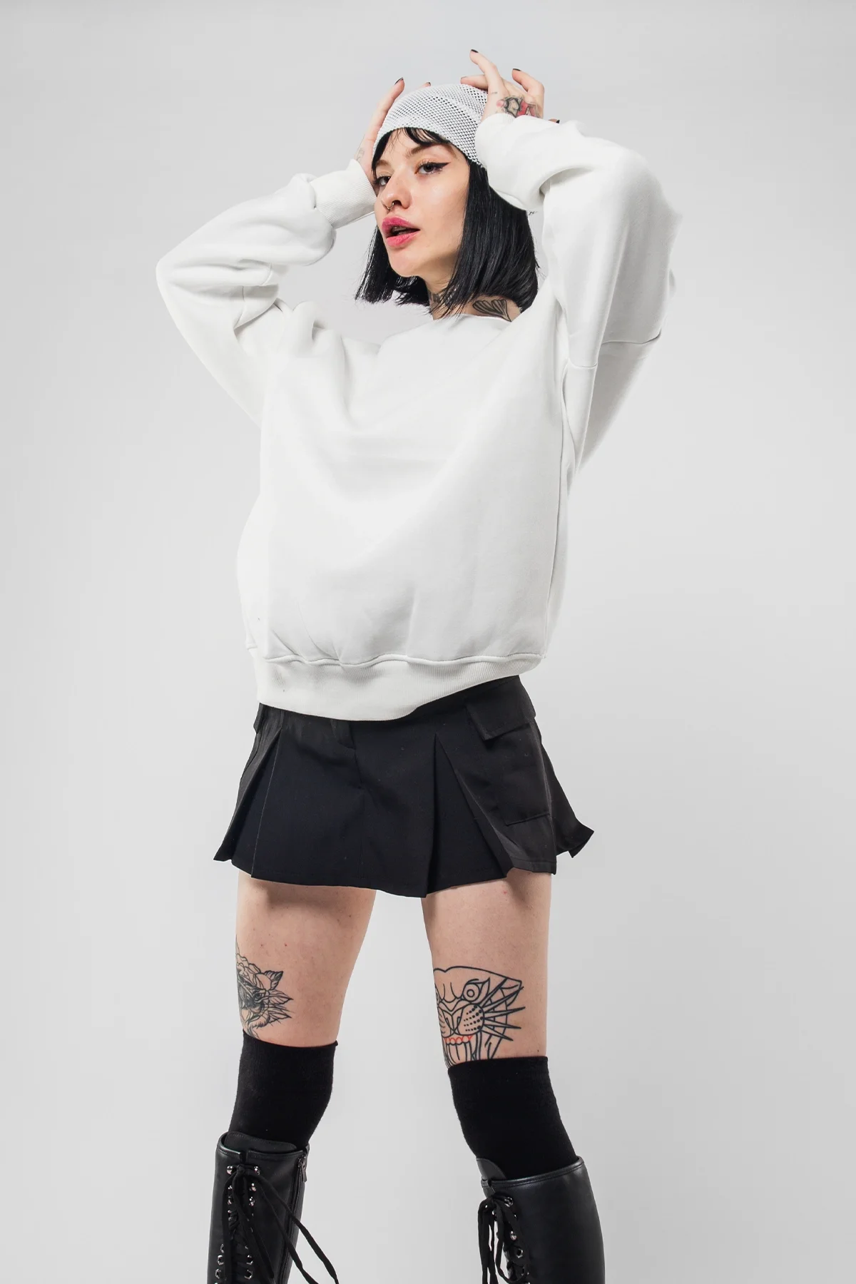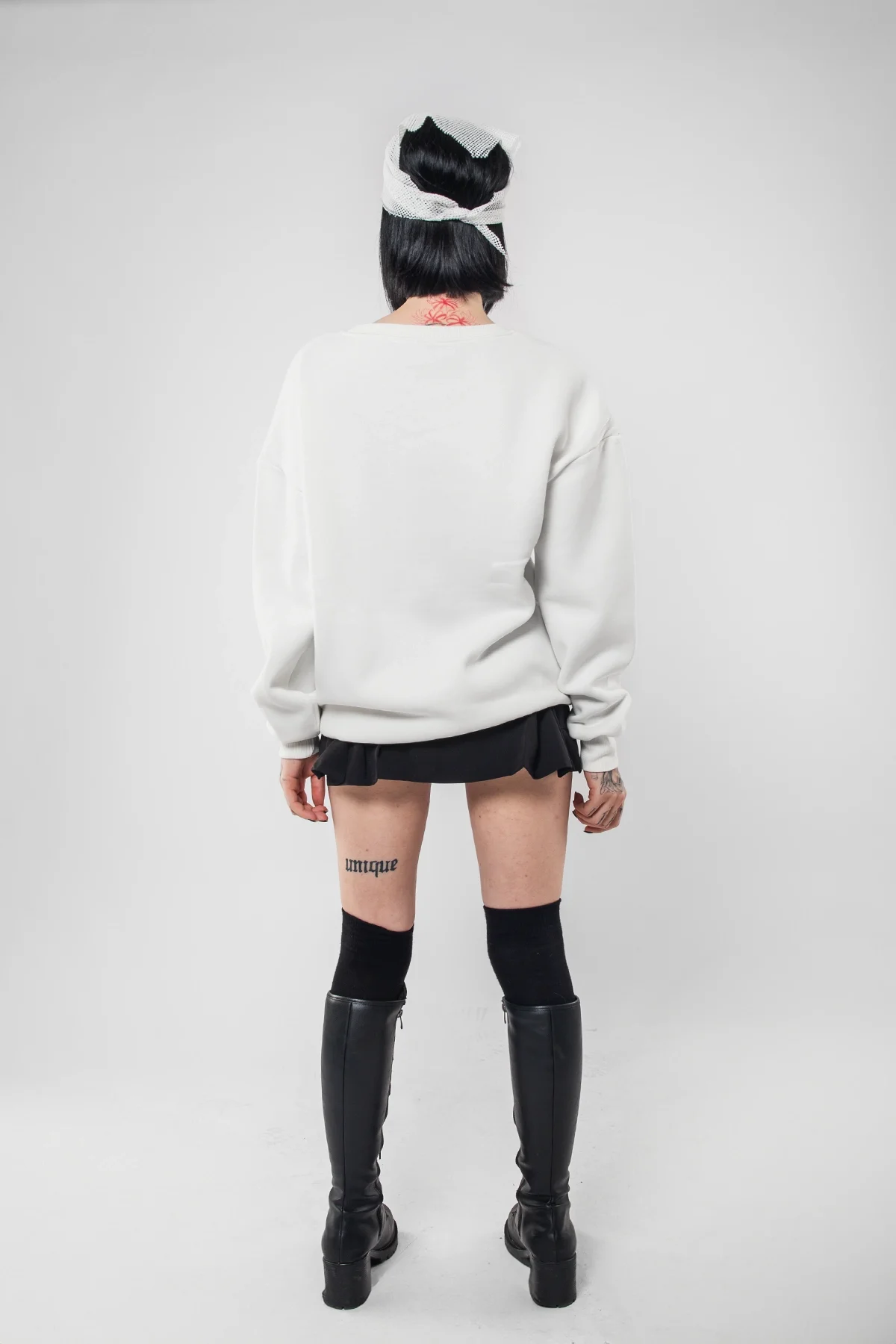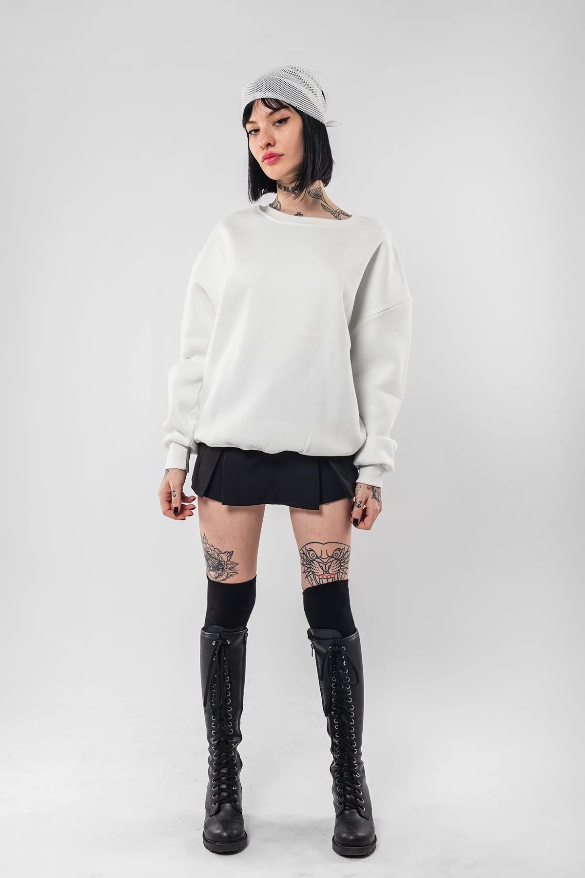 KAPÜŞONSUZ BASİC OVERSİZE UNİSEX BEYAZ SWEATSHİRT
