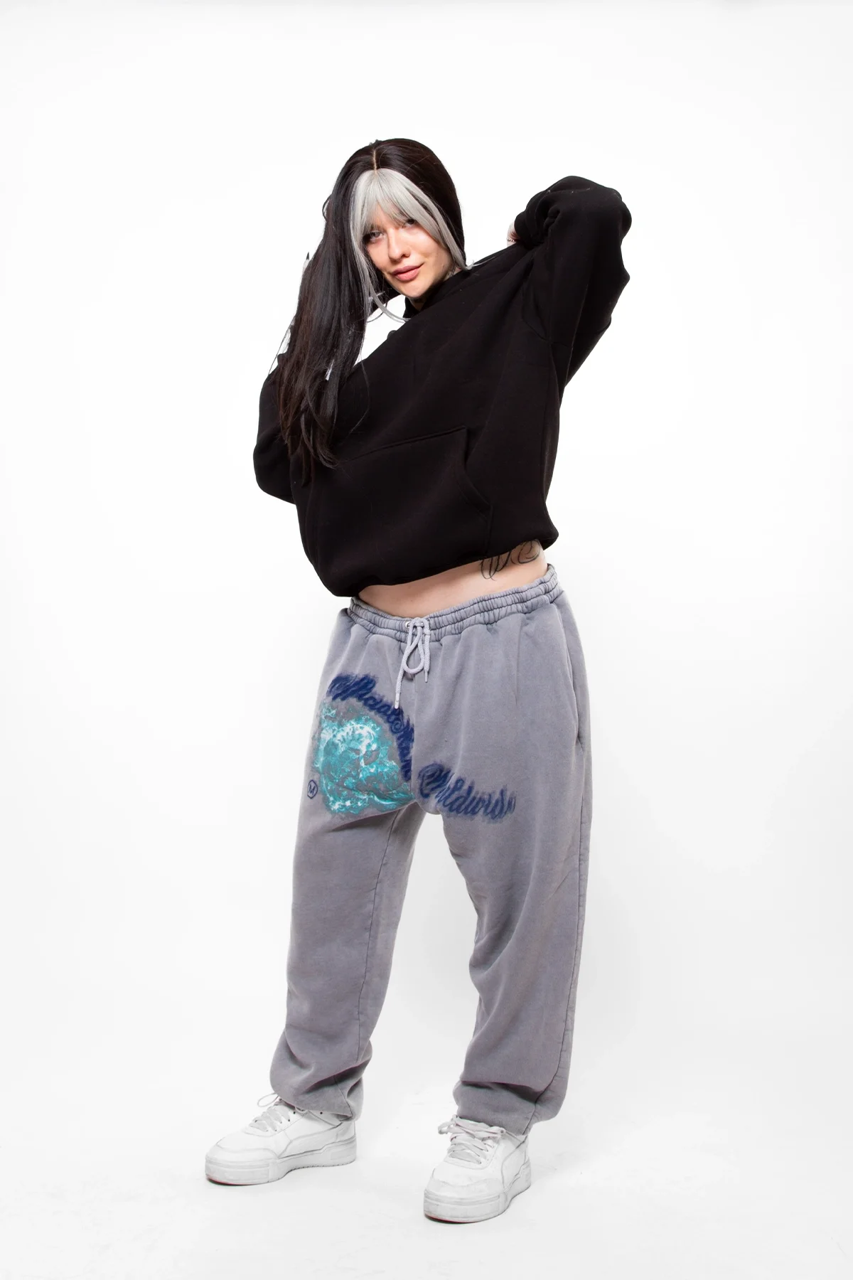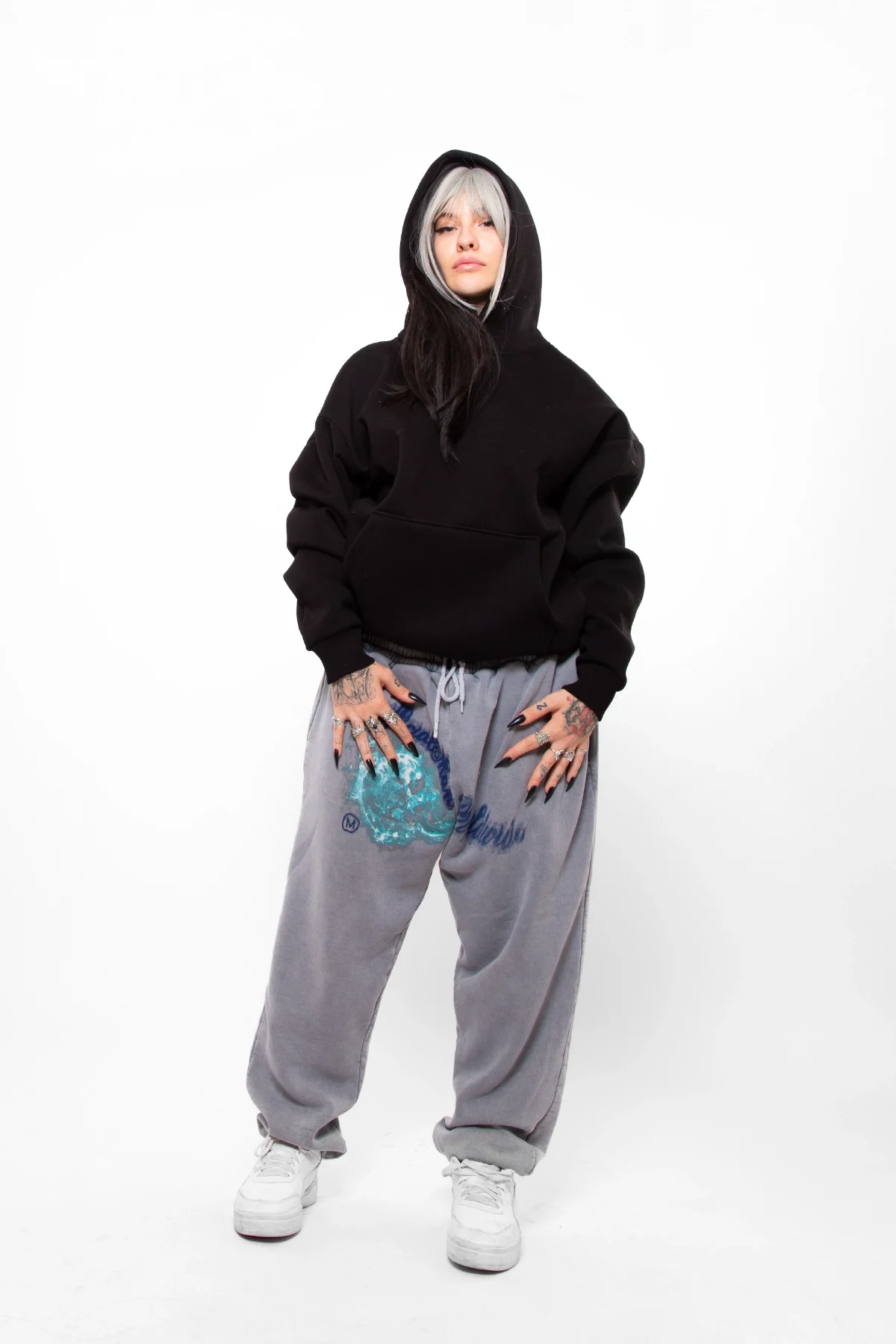 Sırt Baskılı Leopar Yıldız Baskılı Oversize Unisex Yıkamalı Siyah Hoodie