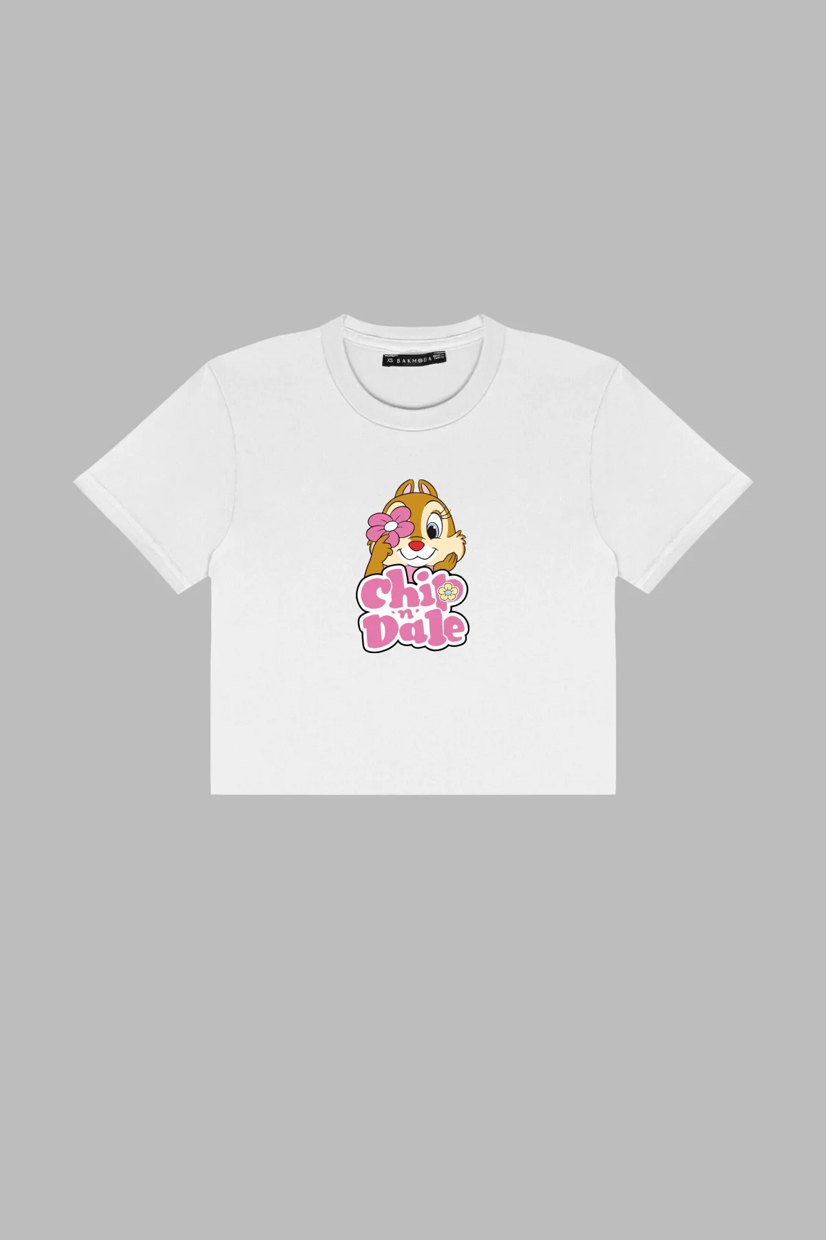 Chip Dale baskılı beyaz crop top ile kendinizi özgür ve şık hissedin, Bak Moda'nın kalitesi ile tarzınızı ön plana çıkarın!