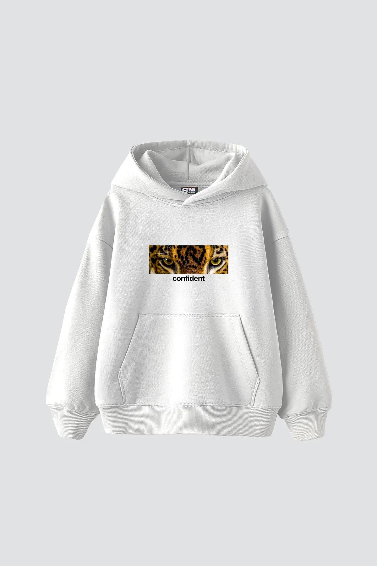 CONFİDENT BASKILI OVERSİZE UNİSEX PREMİUM BEYAZ HOODİE