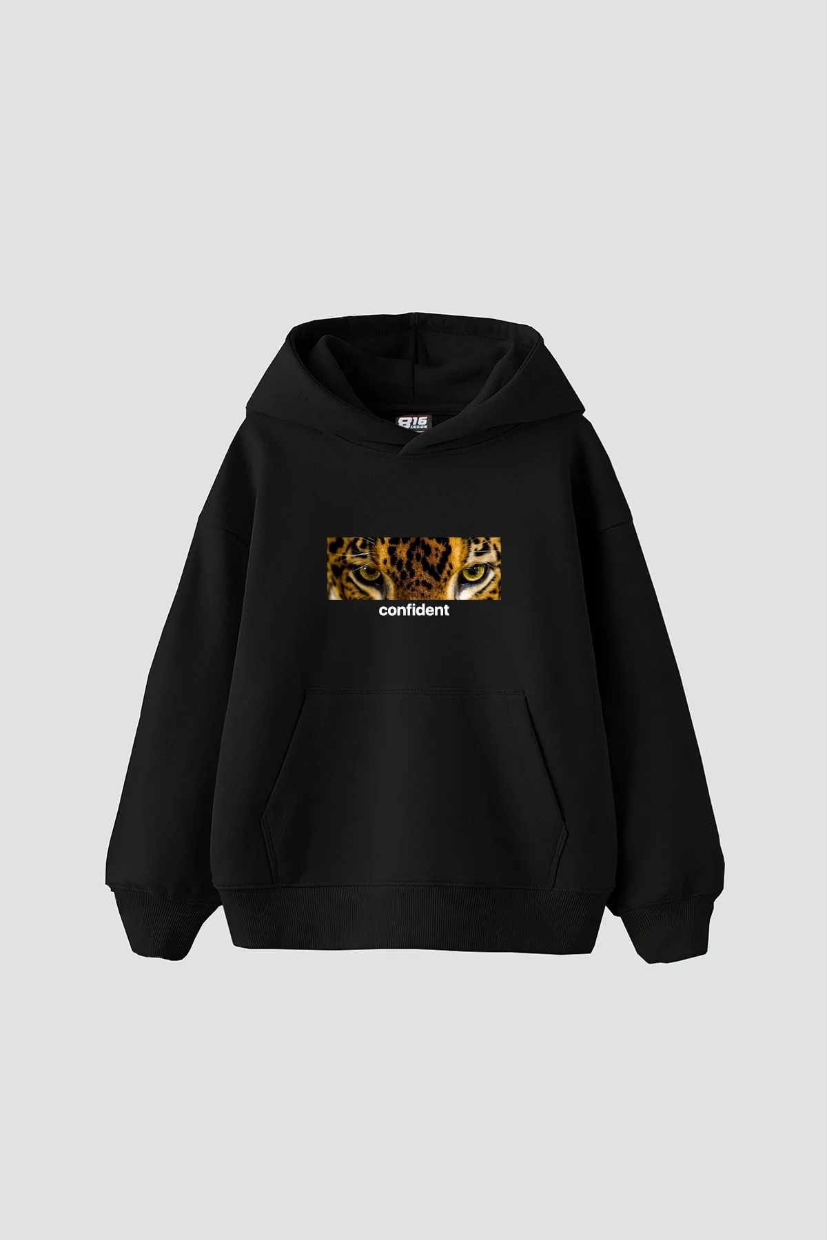 CONFİDENT BASKILI OVERSİZE UNİSEX PREMİUM SİYAH HOODİE