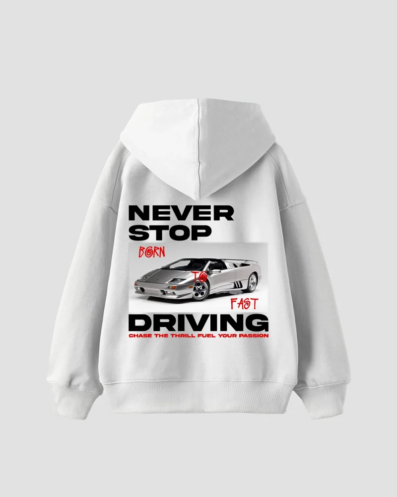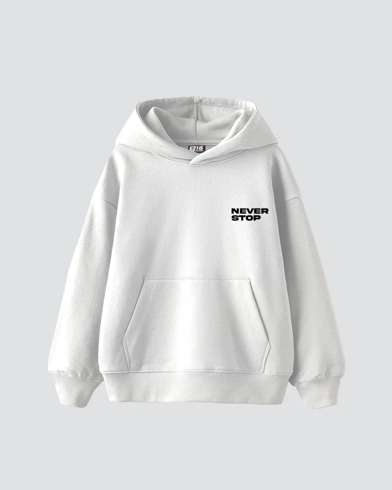 Never Stop Baskılı Oversize Unisex Beyaz Hoodie