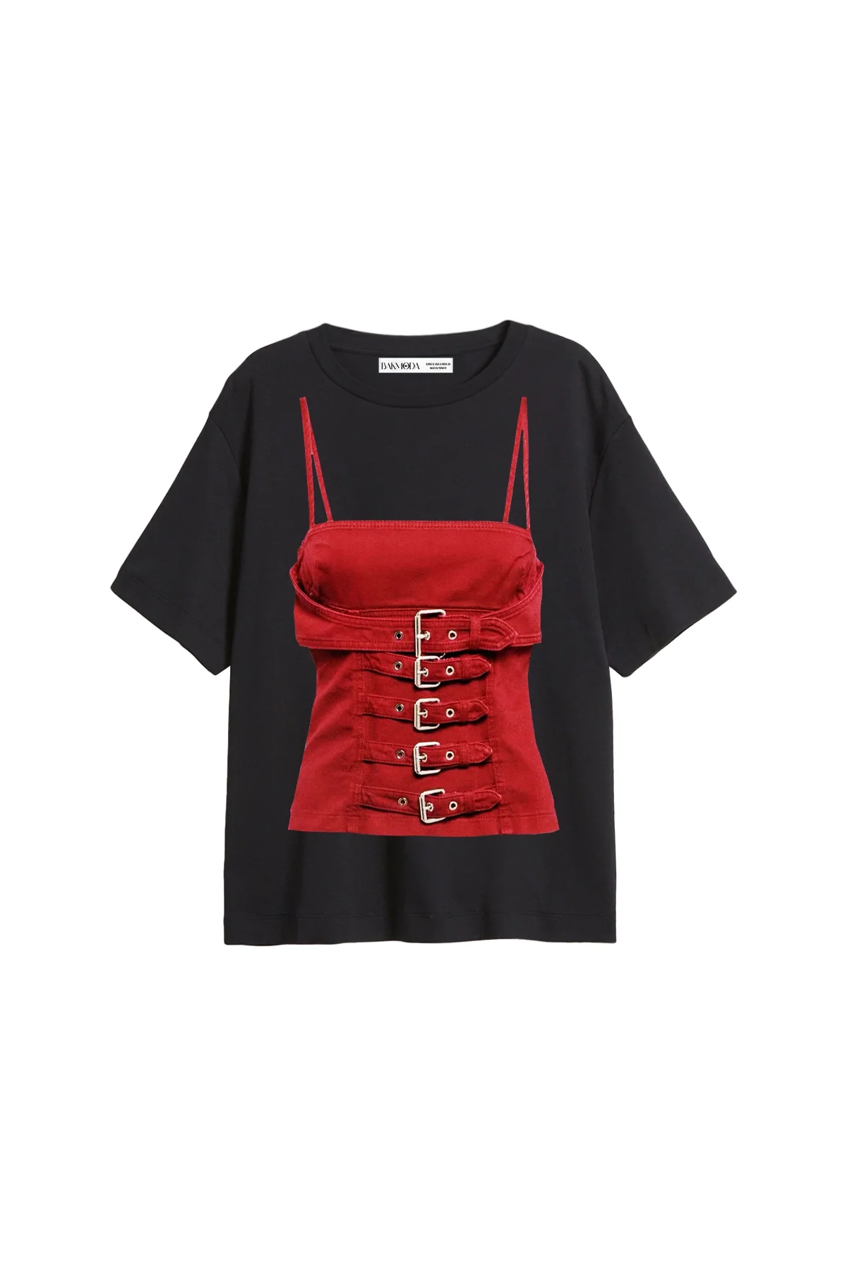 Denim Red Baskılı Relaxed Fit Siyah Kadın Tshirt, Bak Moda'nın kendine özgü tasarımı ile stilinizi tamamlayacak mükemmel bir seçenektir.