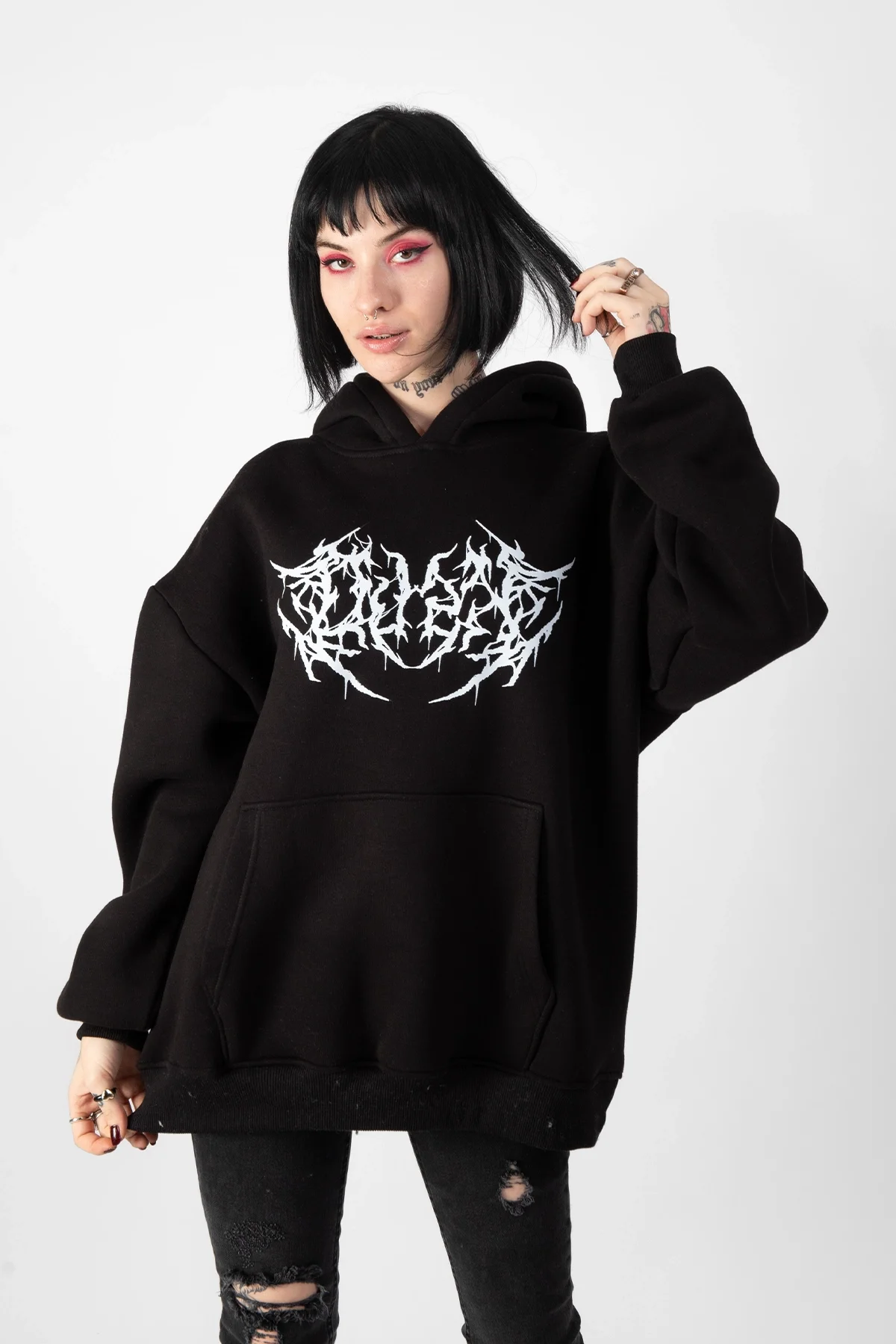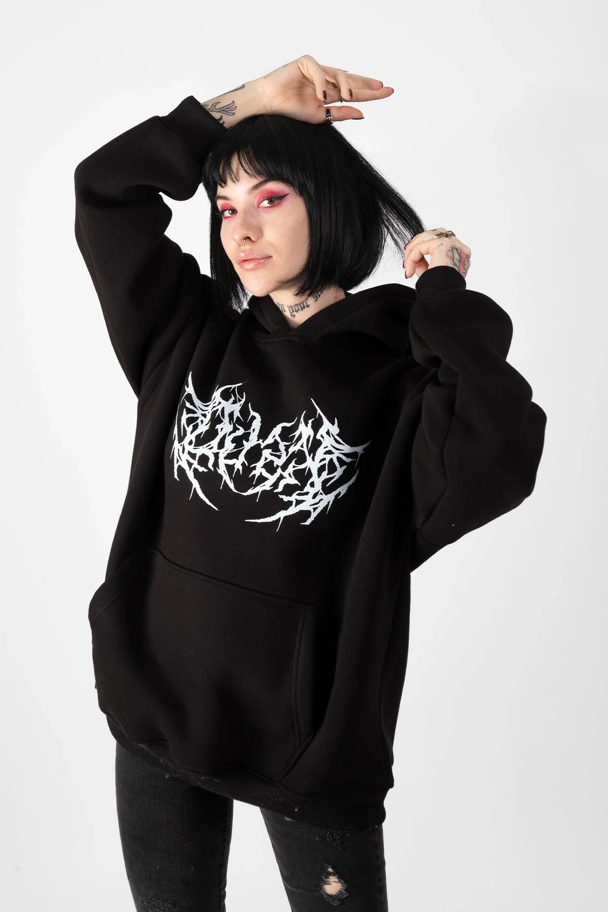 DUSK BASKILI OVERSİZE UNİSEX SİYAH HOODİE