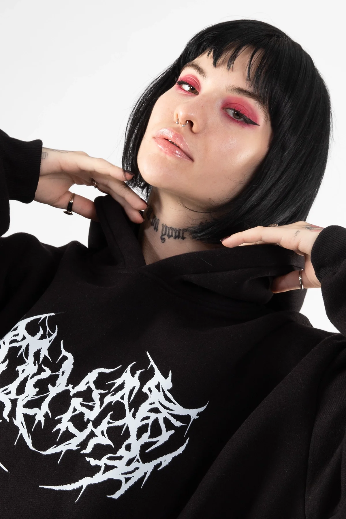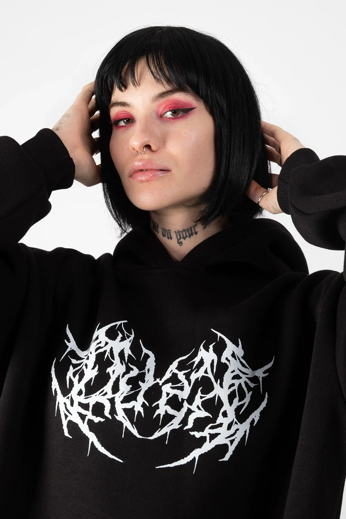 Angel Stitch Baskılı Oversize Unisex Siyah Hoodie