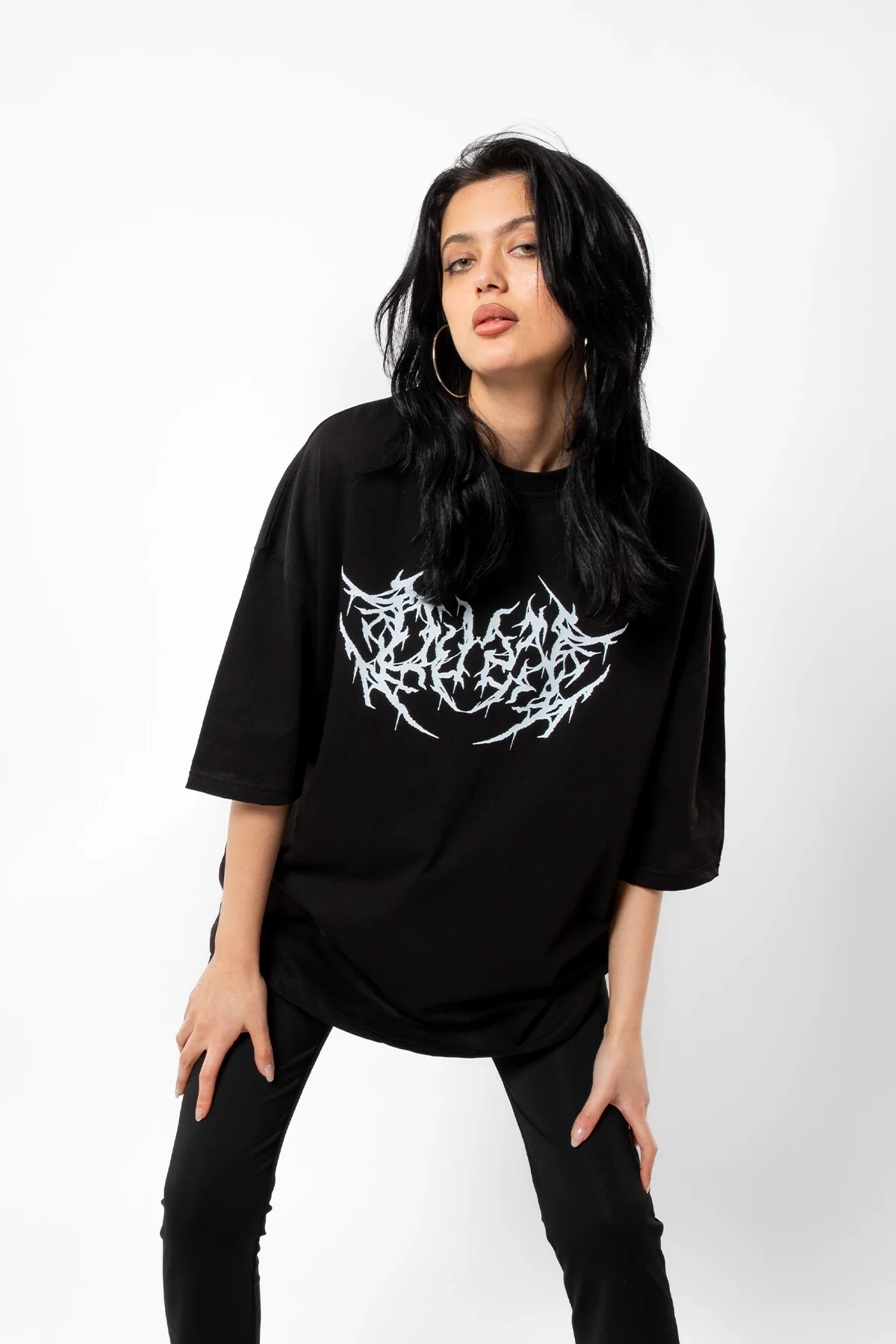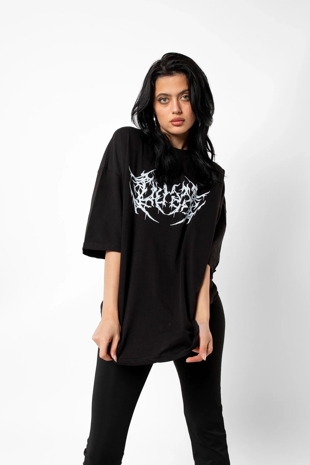 DUSK BASKILI OVERSİZE UNİSEX SİYAH TSHİRT