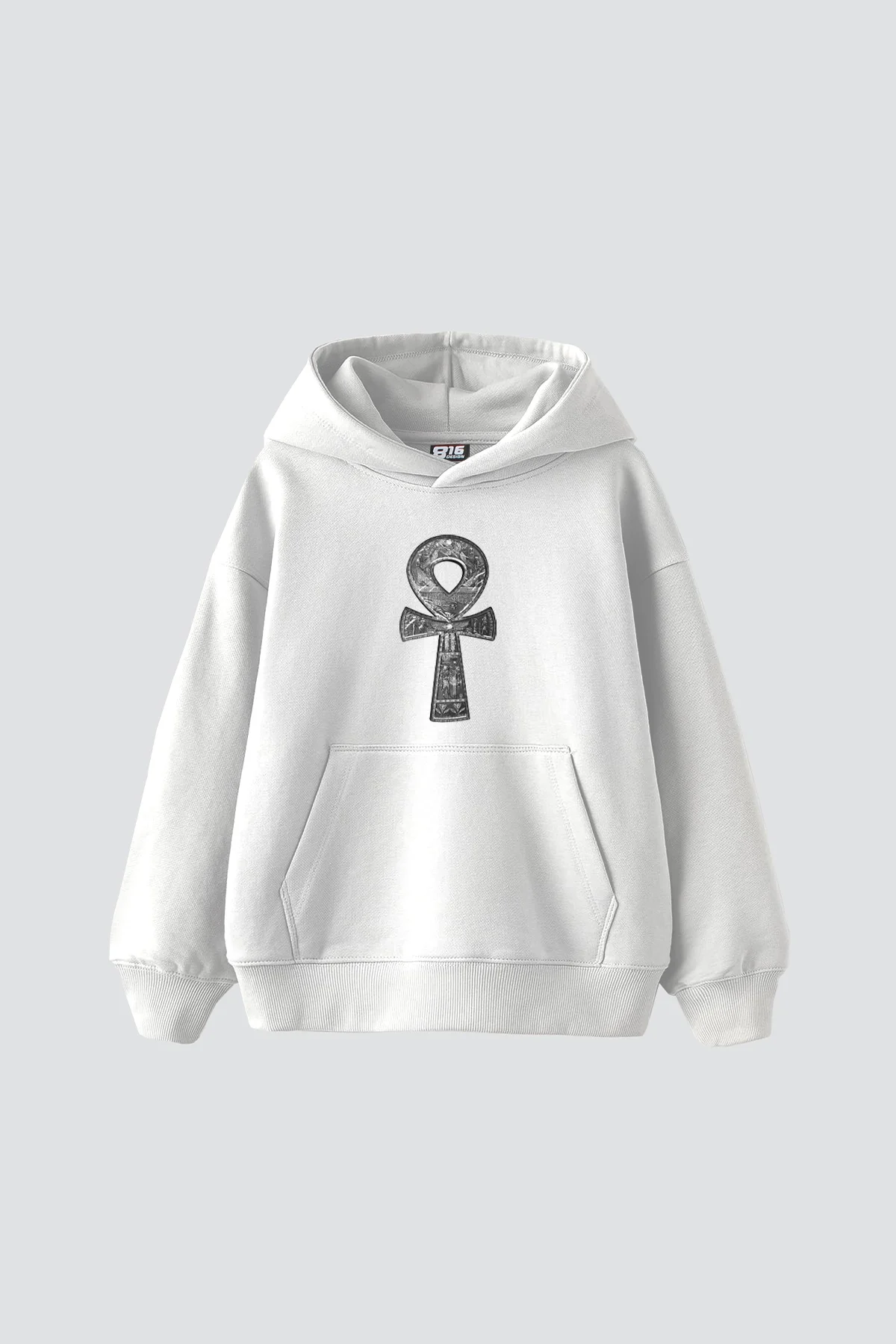 Sokak stiline ışıltılı bir dokunuş: Eye Of Horus Baskılı Beyaz Hoodie, oversize kesimi ve göz alıcı detaylarıyla tarzını cesurca yansıtmak isteyenler için tasarlandı.