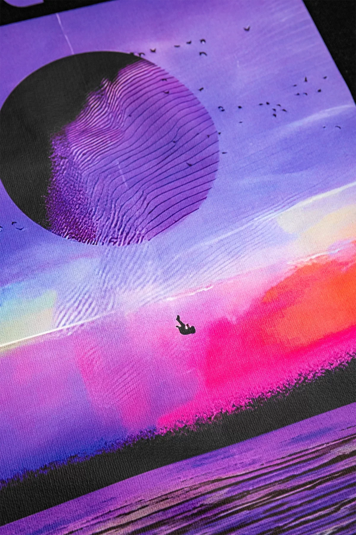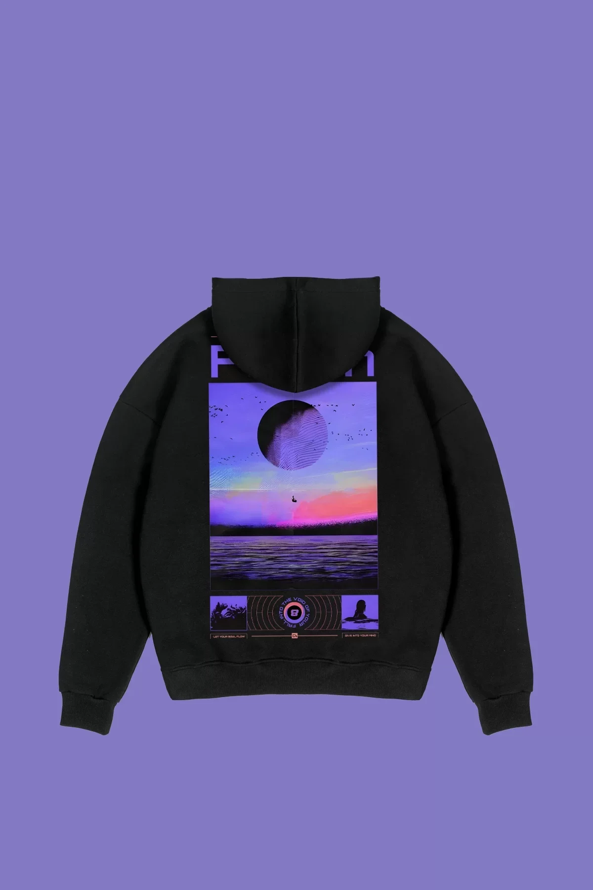 Palm Kissed Baskılı Oversize Unisex Siyah Hoodie
