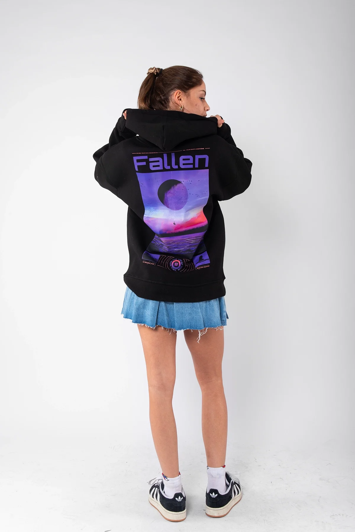 FALLEN BASKILI OVERSİZE UNİSEX SİYAH HOODİE