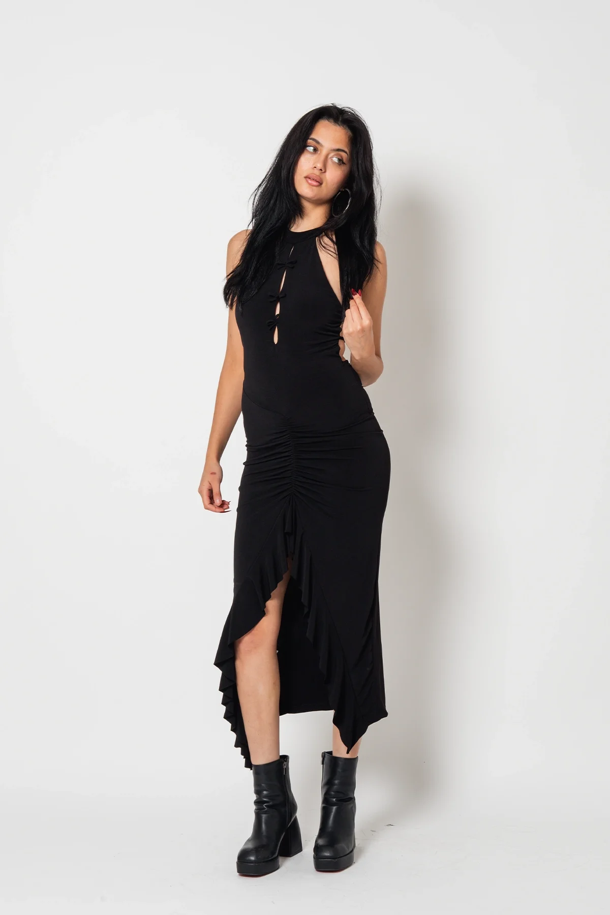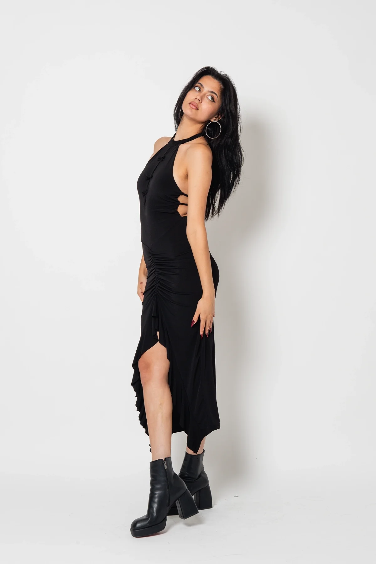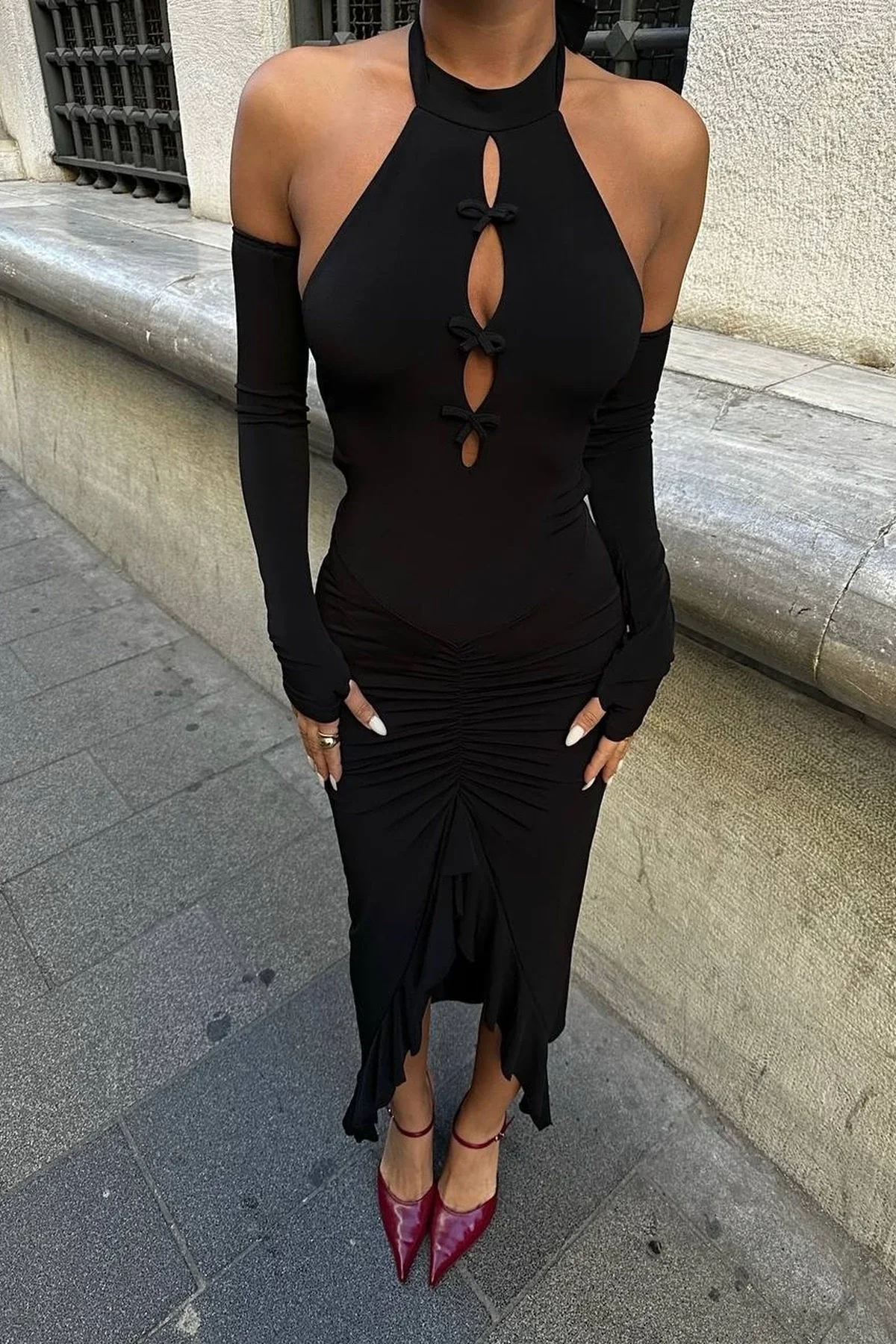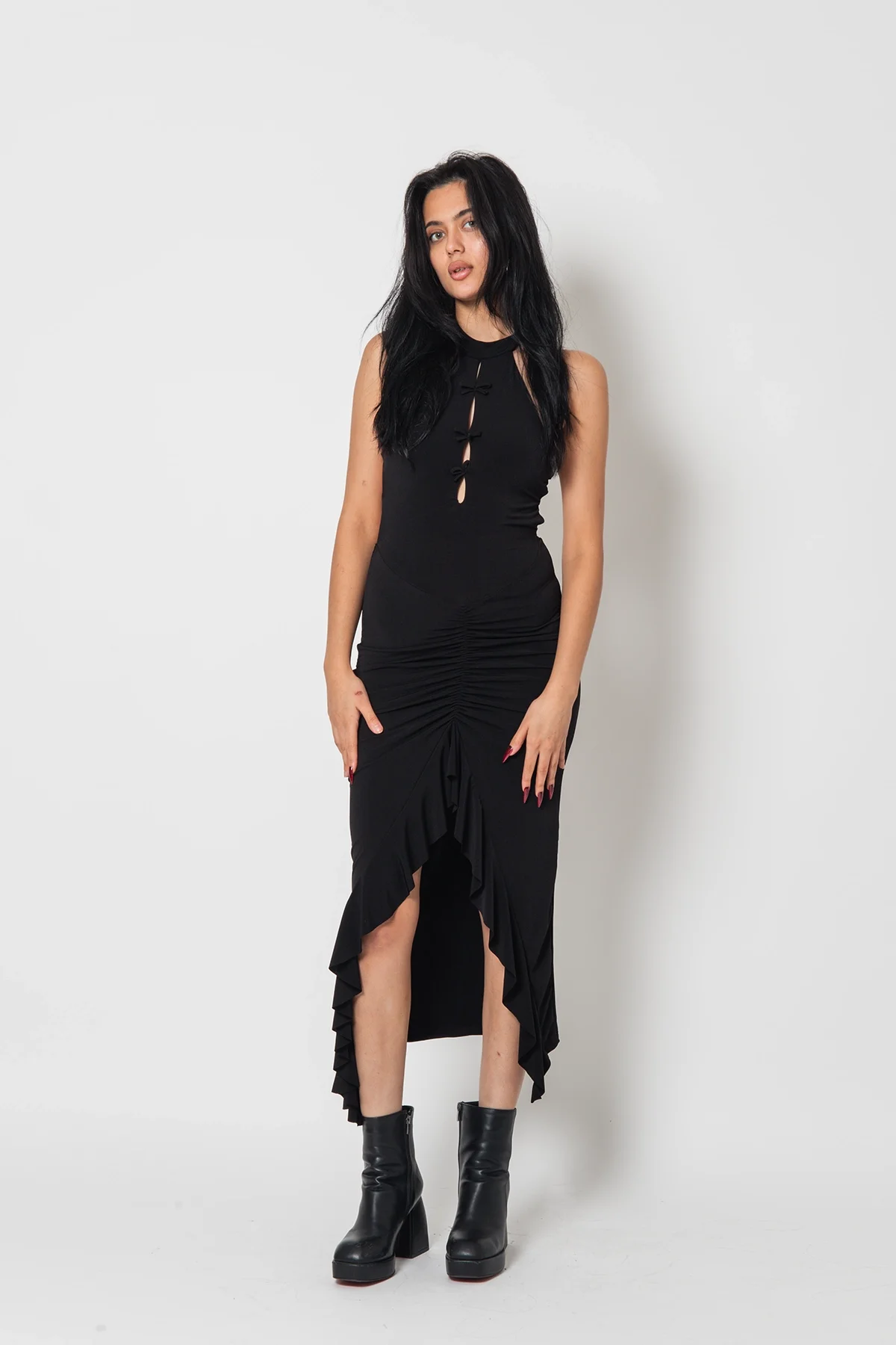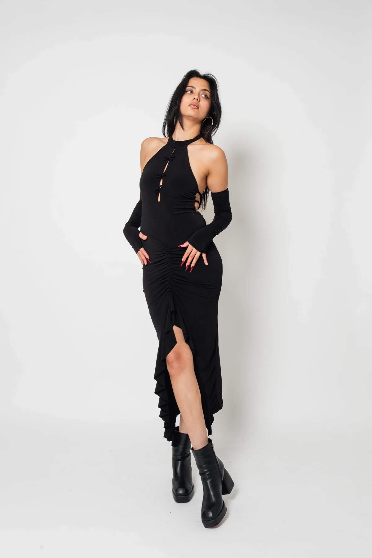 Hem gündüz hem gece kullanıma uygun olan bu elbise, topuklu ayakkabılar ve zarif aksesuarlarla kombinlendiğinde stilinize zarafet katacak.