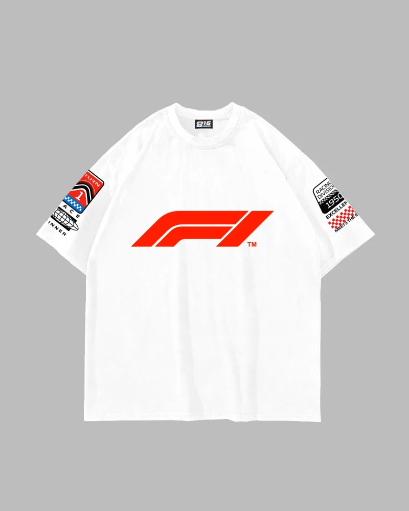 Race Baskılı Oversize Unisex Beyaz Tshirt