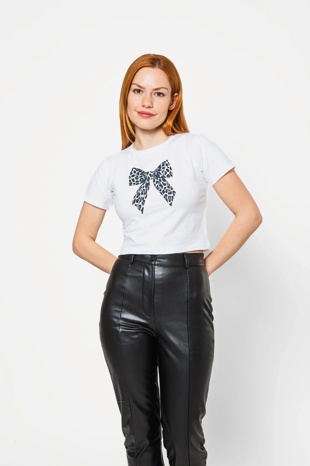 FİYONK LEOPAR "V2" BASKILI BEYAZ CROP TOP