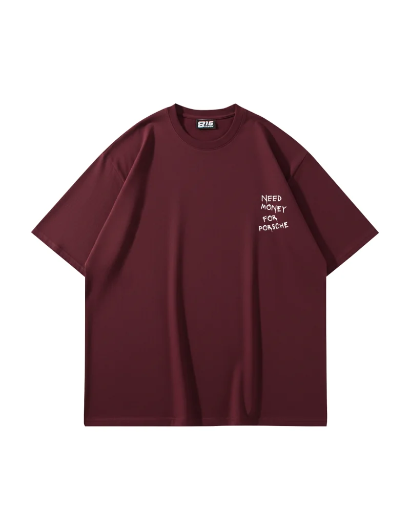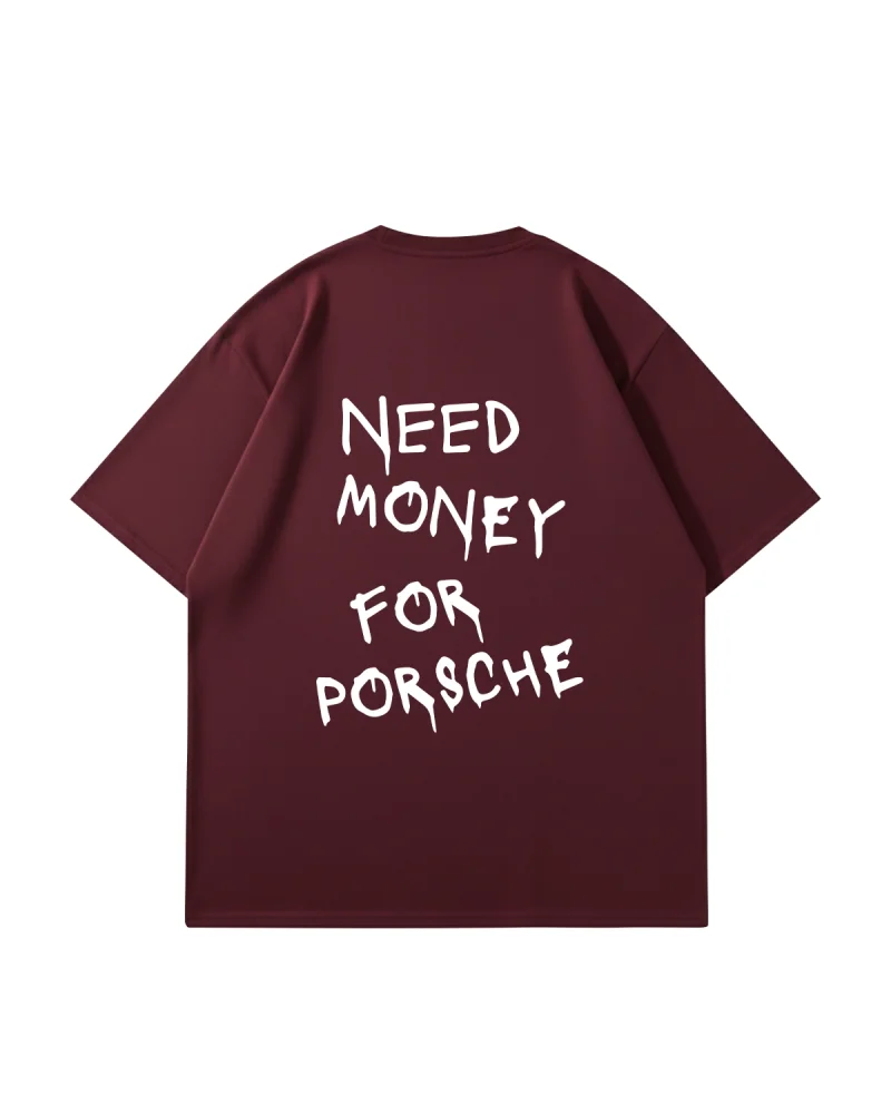 Need Money For Porsche Baskılı Oversize Unisex Bordo Tshirt