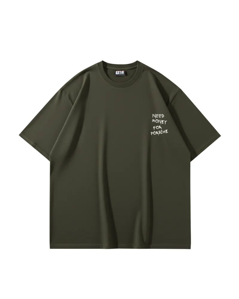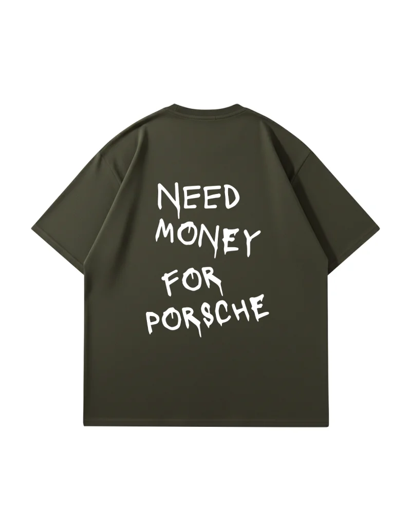 Need Money For Porsche Baskılı Oversize Unisex Haki Tshirt
