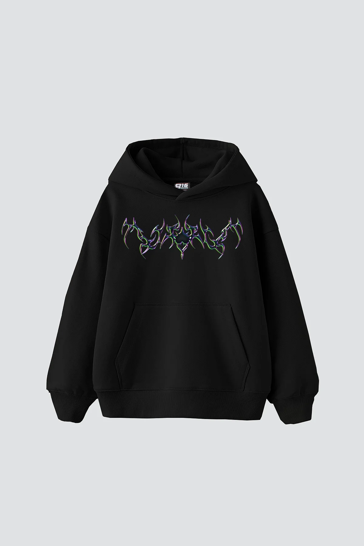 FORGET HOLOGRAM BASKILI OVERSİZE UNİSEX PREMİUM SİYAH HOODİE