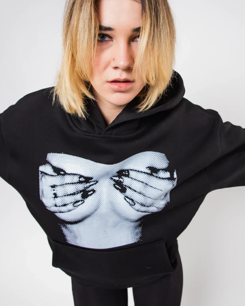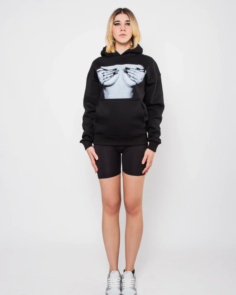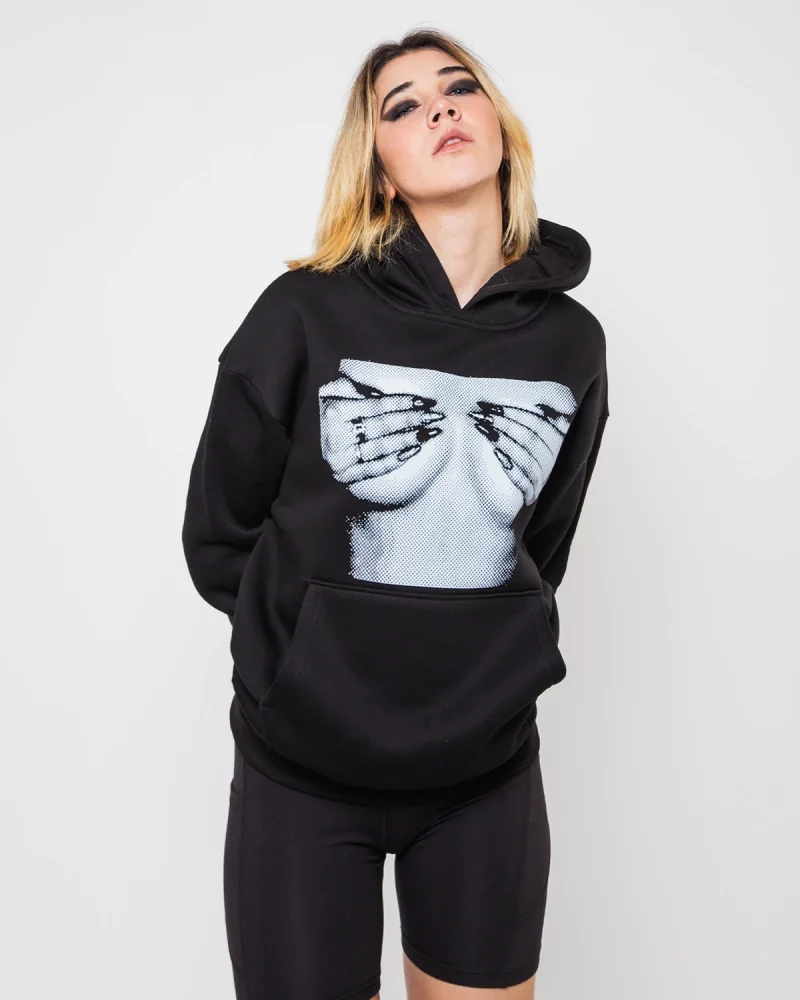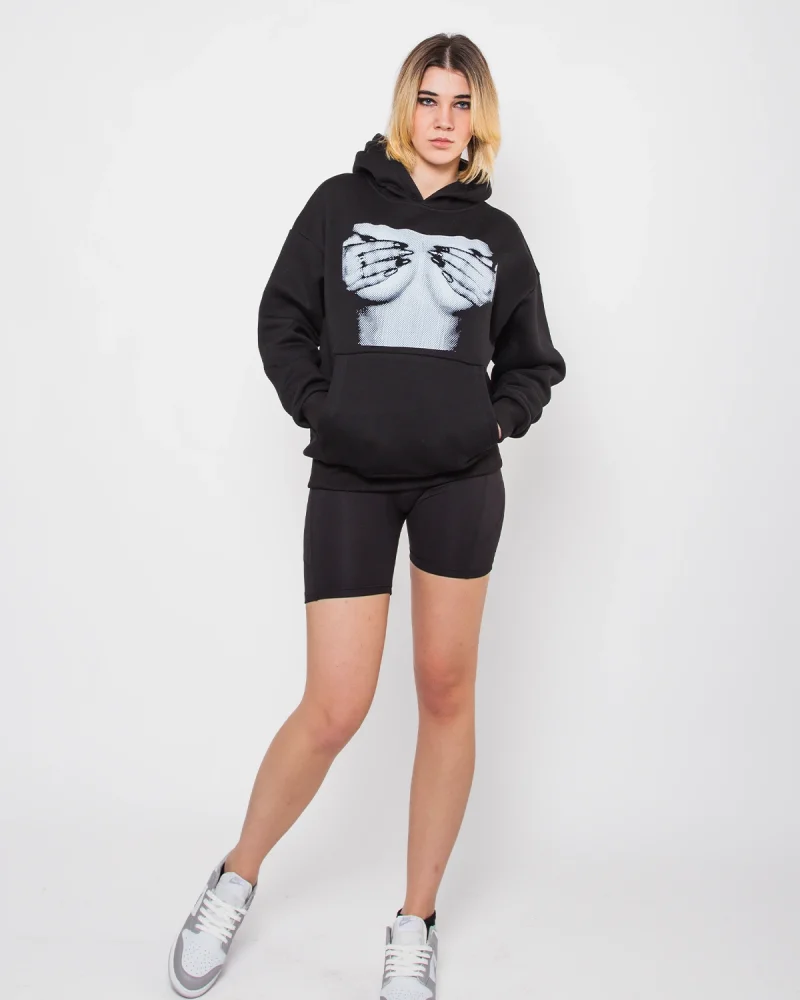 Silhouette Boobs V2 Baskılı Oversize Unisex Siyah Hoodie