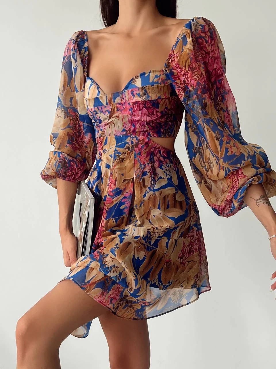 GÖĞÜS DEKOLTELİ TÜL DETAYLI MİNİ ELBİSE