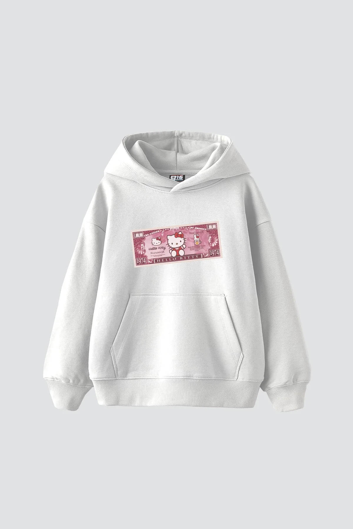 Hello Kitty Money Baskılı Oversize Unisex Beyaz Hoodie