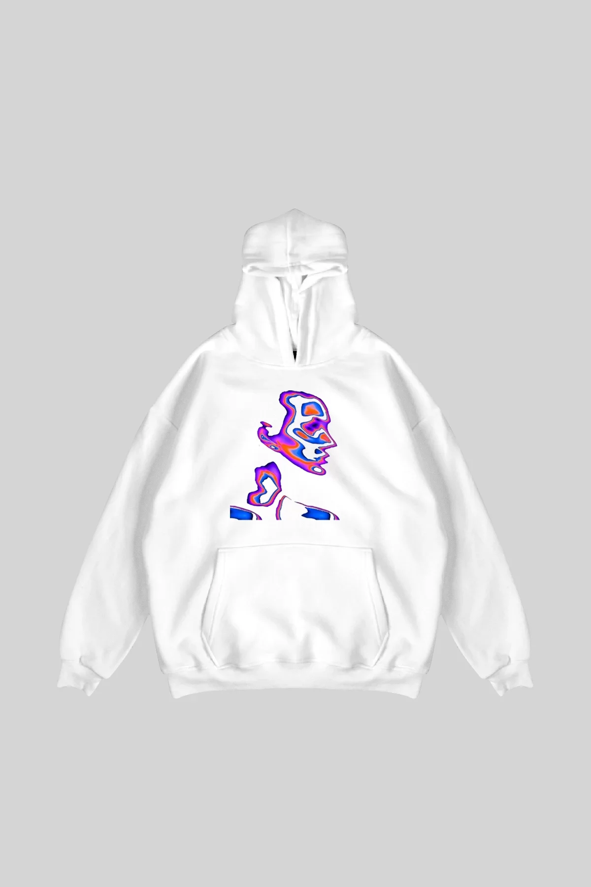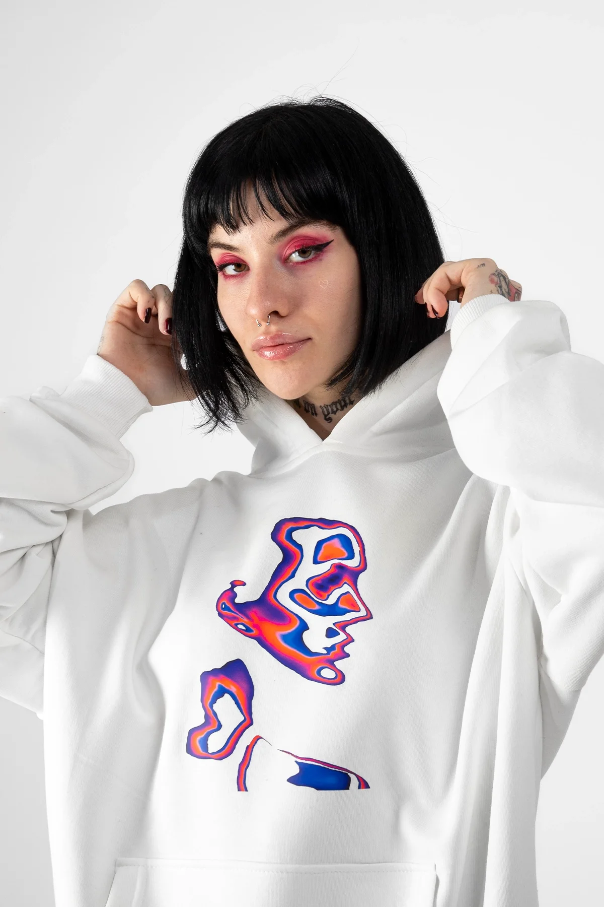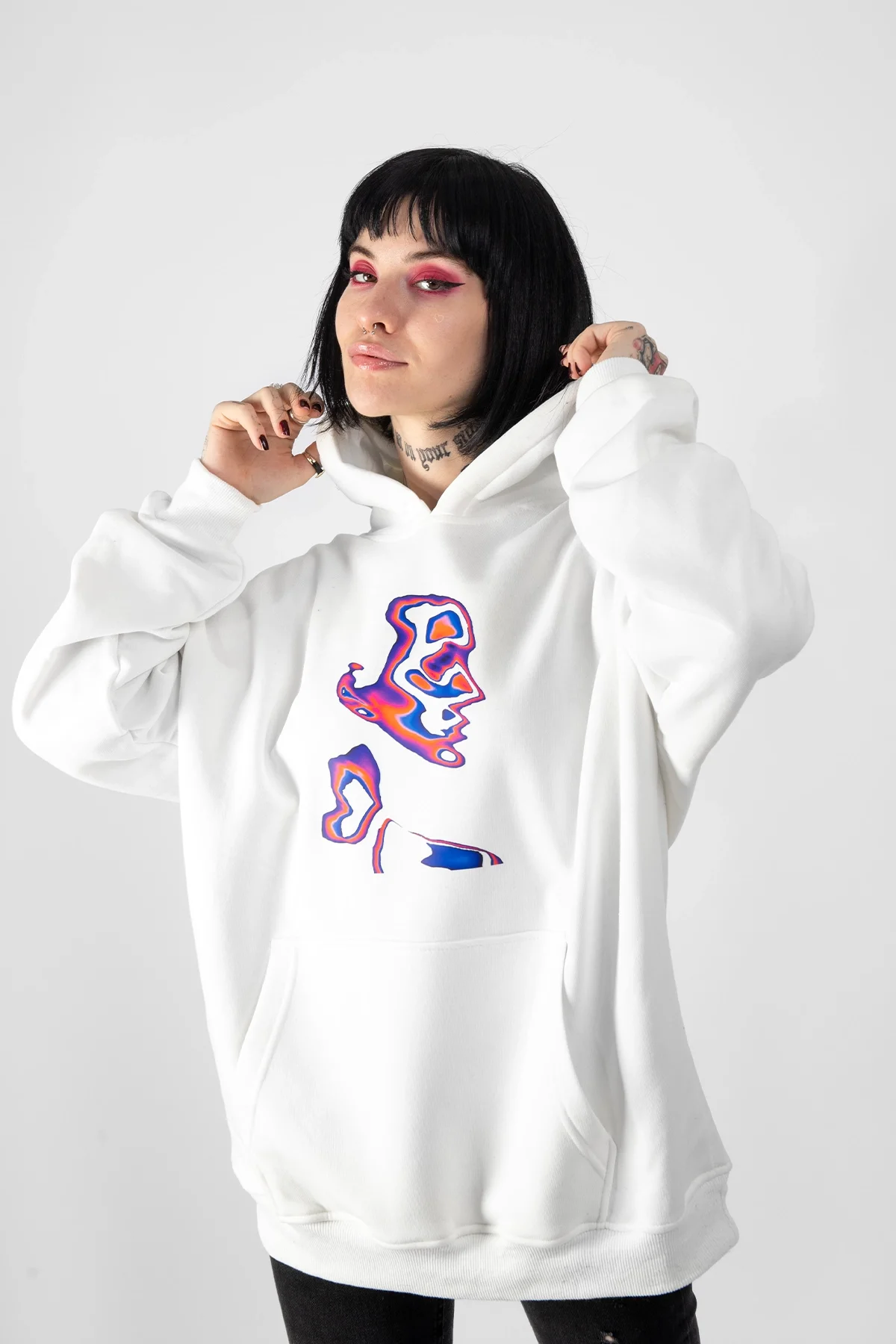 İLLUSİON WOMAN BASKILI OVERSİZE UNİSEX BEYAZ HOODİE