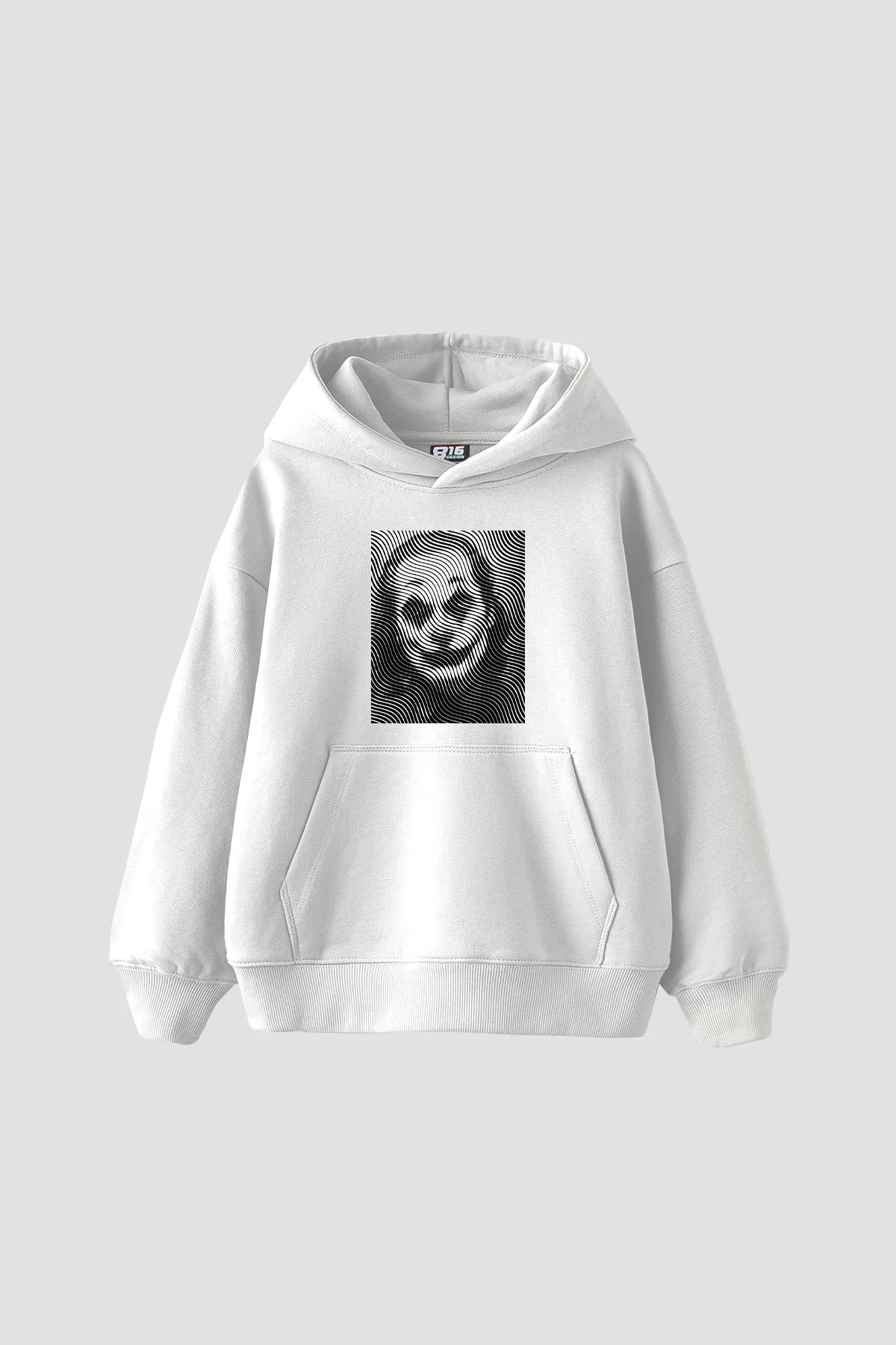 JKR İLLUSİON BASKILI OVERSİZE UNİSEX PREMİUM BEYAZ HOODİE