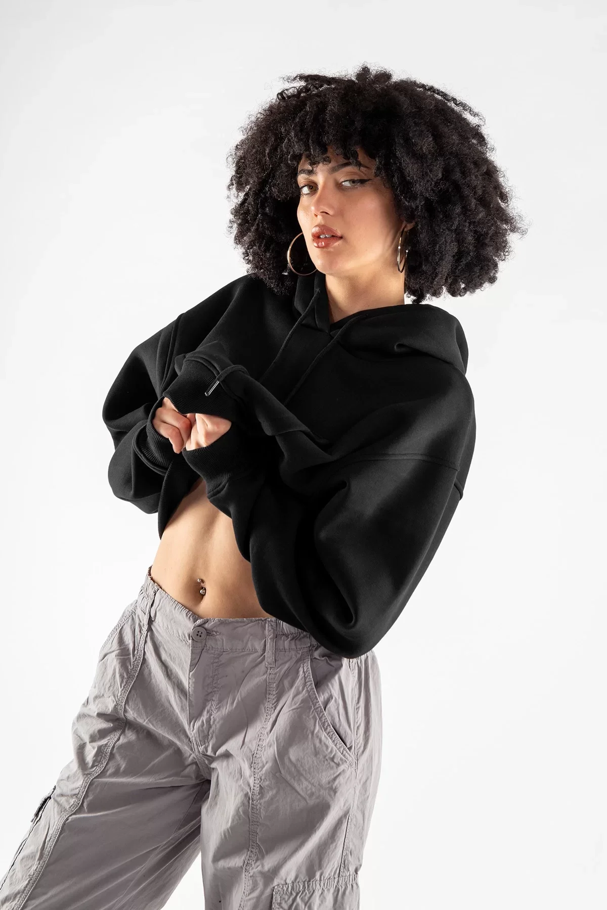 Şıklık ve konforu bir arada sunan Kapüşonlu Basic Kemer Boy Oversize Kadın Siyah Sweatshirt, günlük kombinlerinizin vazgeçilmezi olacak. Yumuşak dokulu kumaşı ve oversize kesimi ile gün boyu rahatlık sağlarken, modern kesimi sayesinde sokak modasına uyum sağlar. Kemer boy uzunluğu sayesinde hem taytlarla hem de jeanlerle mükemmel uyum yakalar. Soğuk havalarda sizi sıcak tutarken, kapüşon detayıyla stilinize cool bir dokunuş katar. Minimal tasarımı sayesinde her tarza kolayca adapte olur.