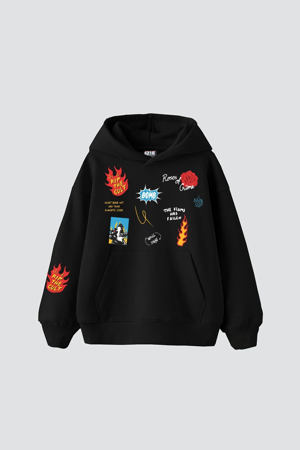 KARMA CULT BASKILI OVERSİZE UNİSEX PREMİUM SİYAH HOODİE